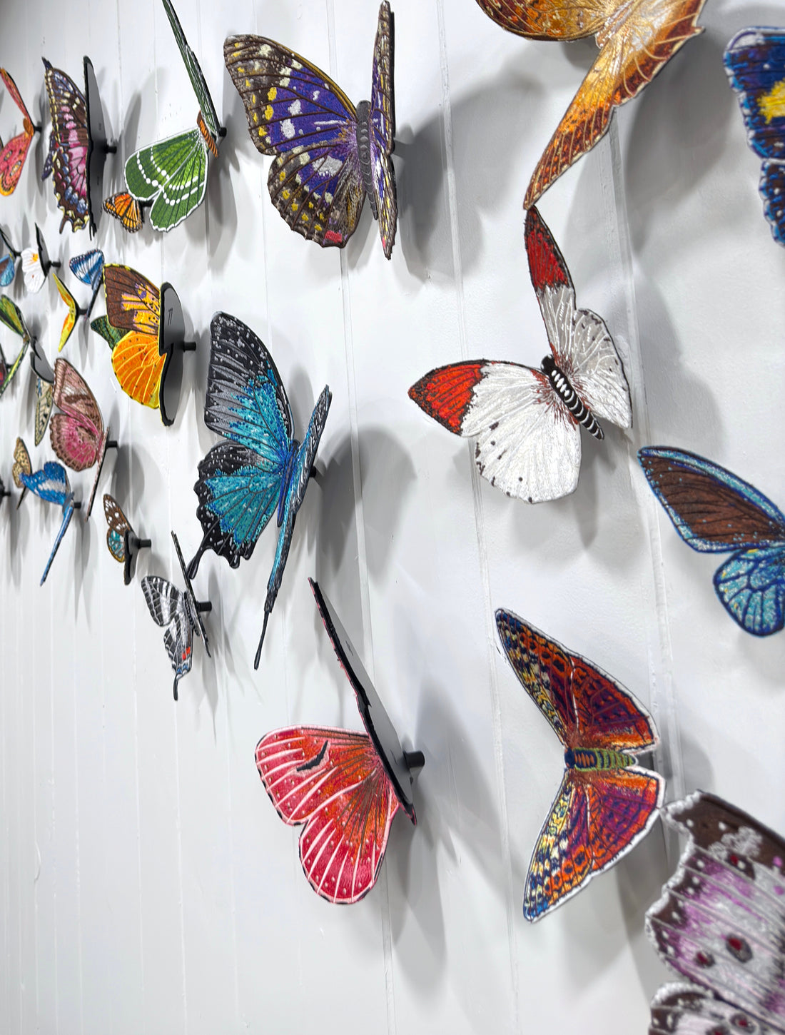 From there, the transformation is uniquely yours. Embroidered patches, feathers, appliqués, vintage chains, and charms are chosen and arranged to reflect your symbols, passions, and memories. No two pieces are ever the same—each one becomes a one-of-a-kind portrait of you.