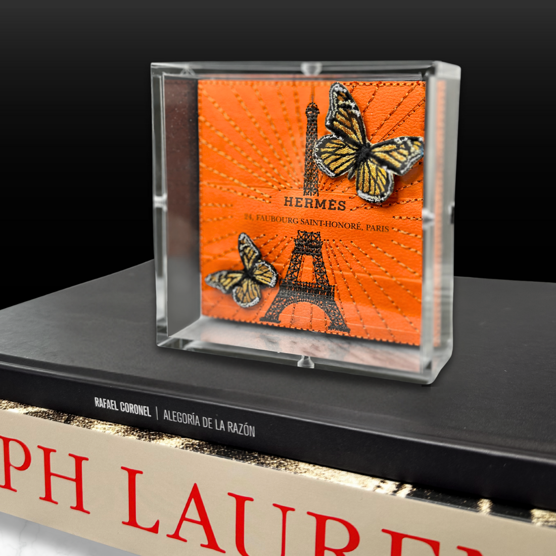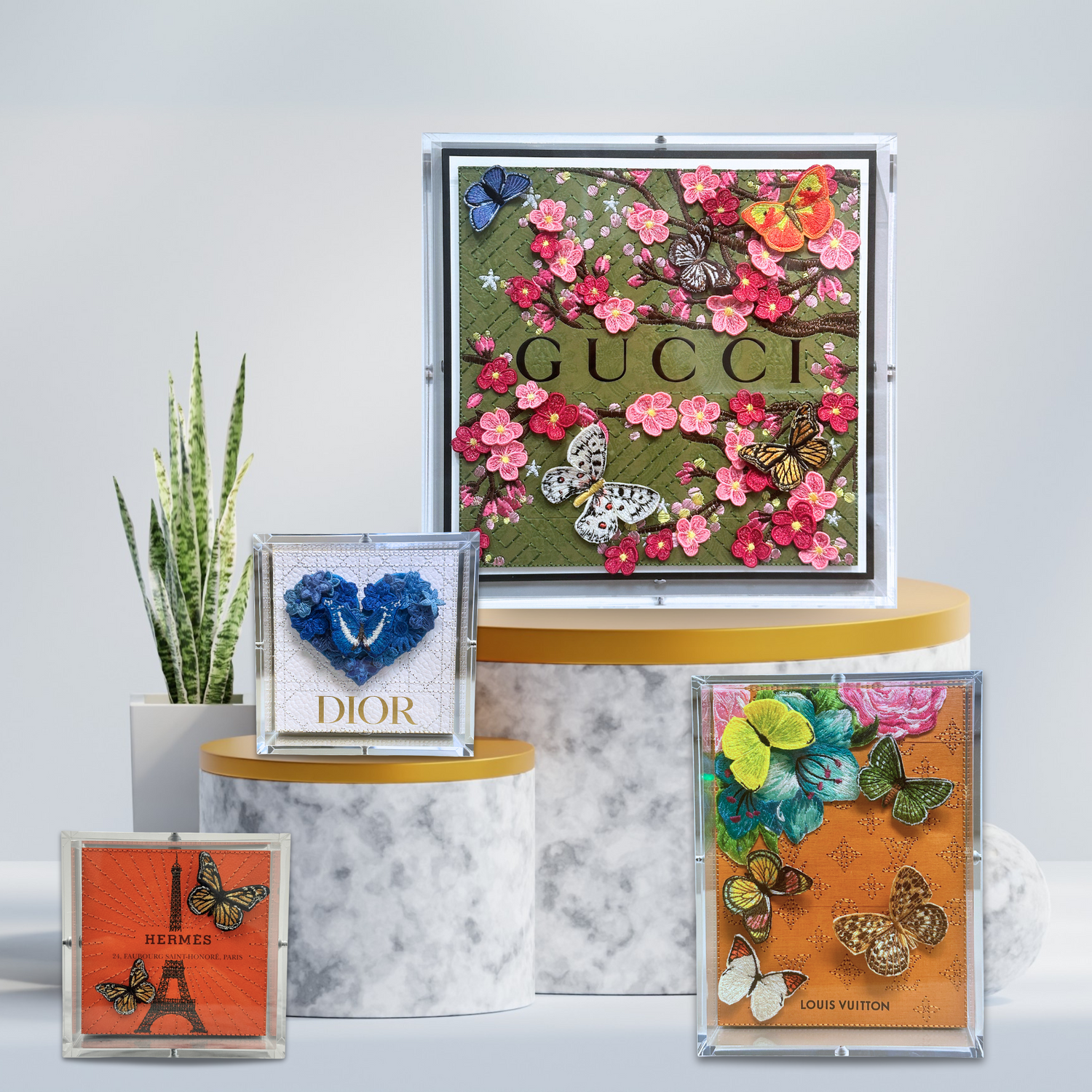 The Charmscape series takes that idea even further. Using deconstructed luxury packaging and vintage bags, these works become stages for ever-shifting constellations of charms and treasures—each a tactile story of material, memory, and meaning.
