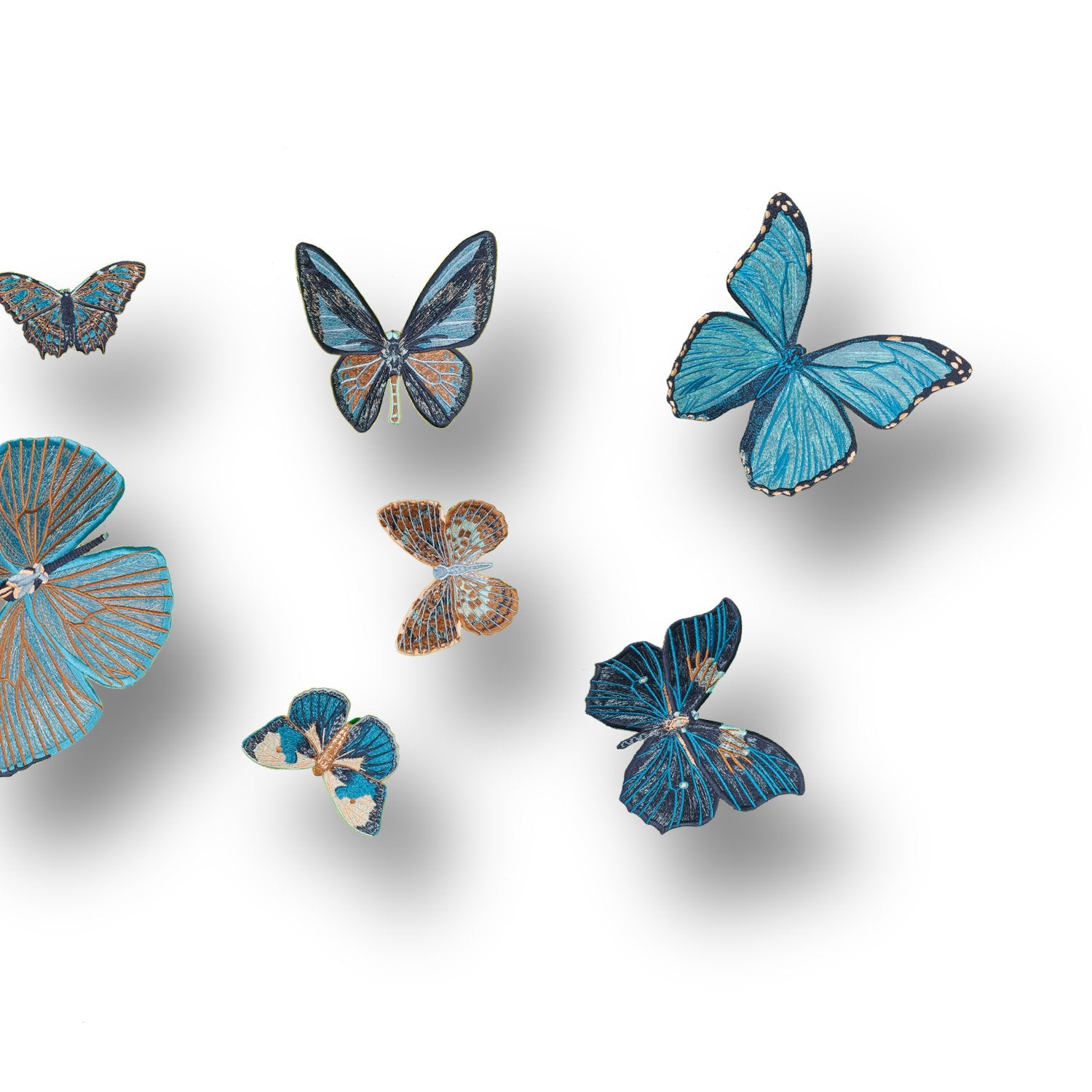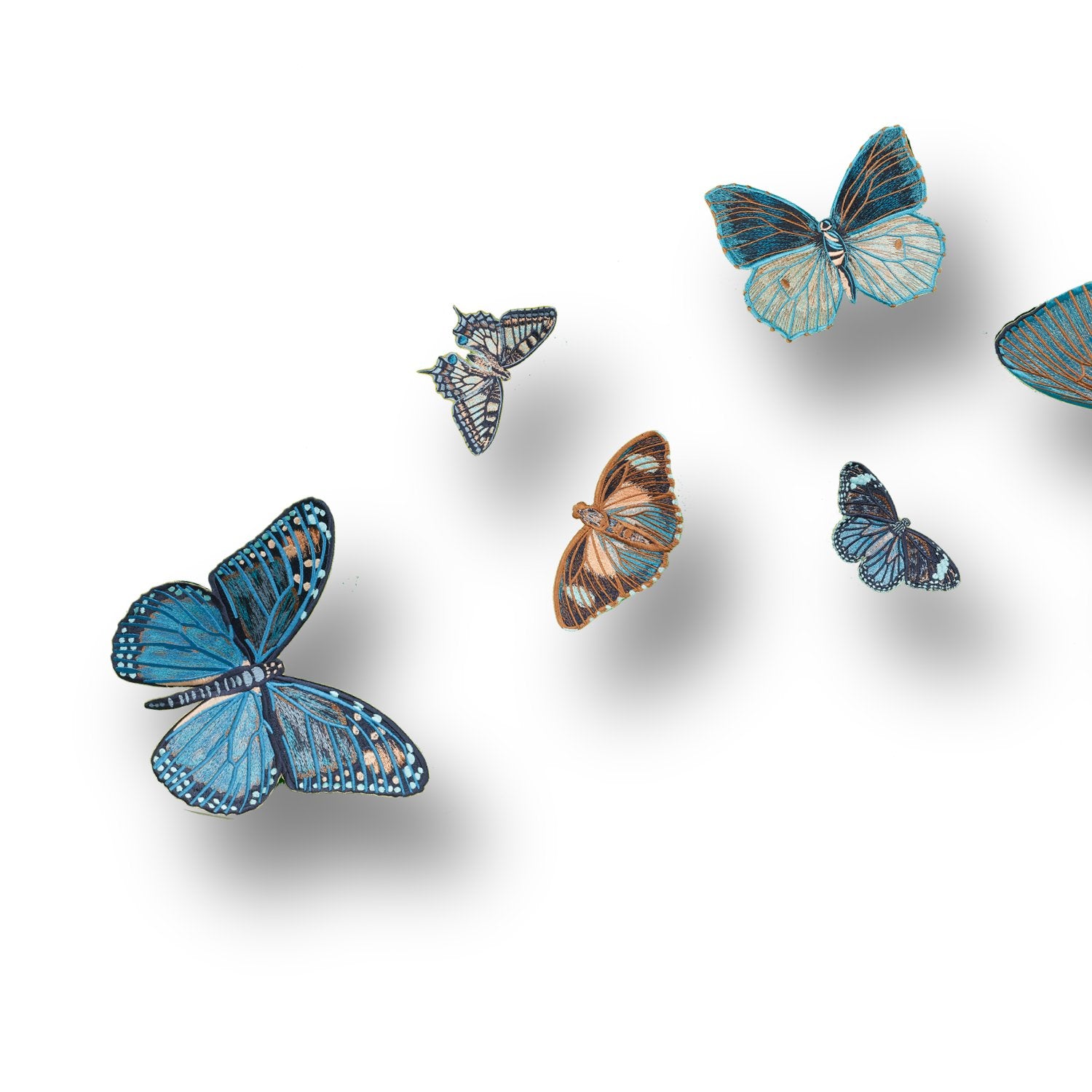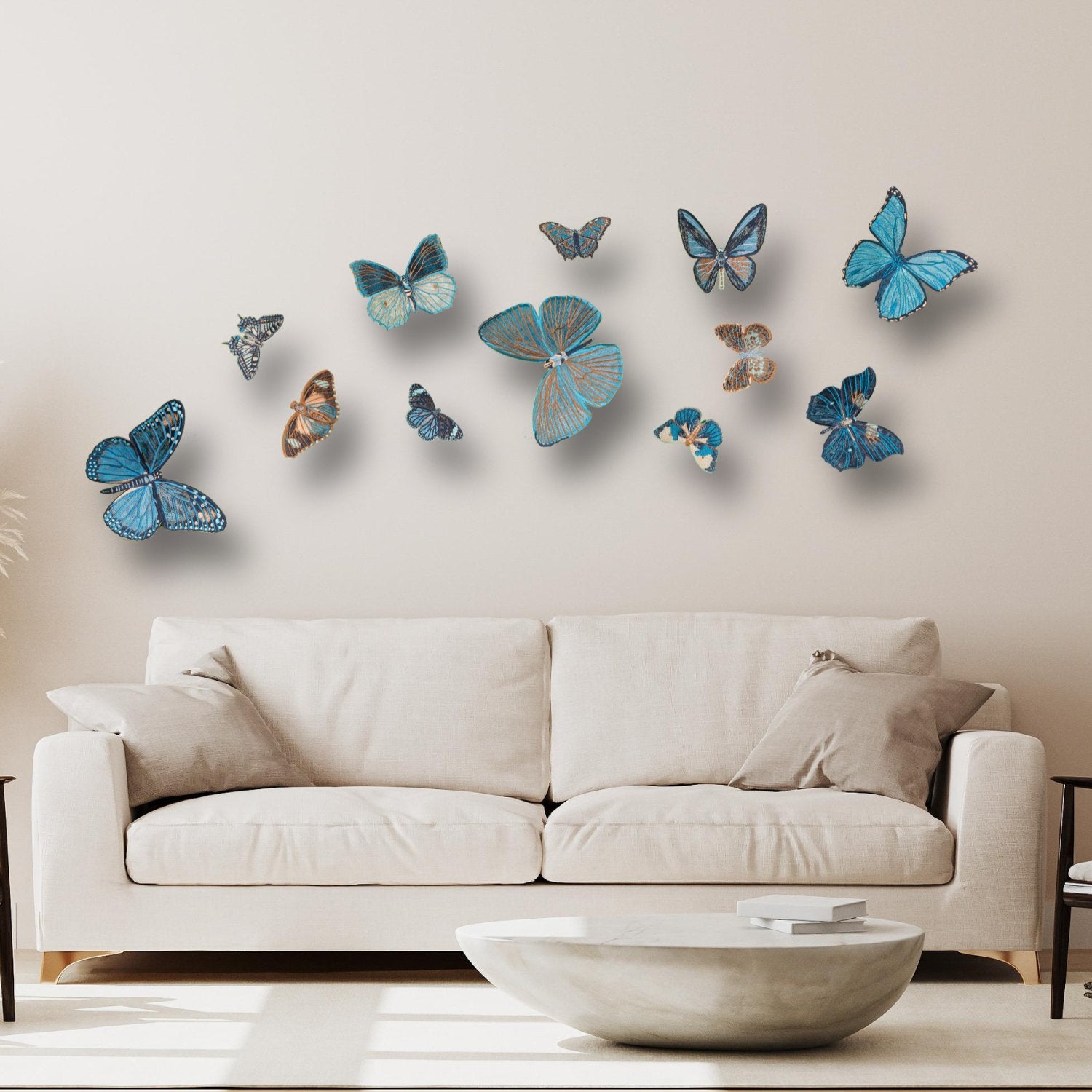 The butterflies come with a metal support that is attached to your wall with an anchor, once the anchor is attached to your wall the butterflies are threaded in place. Installation is a breeze and if you decide to move them later you simply unscrew the butterfly and remove the base.