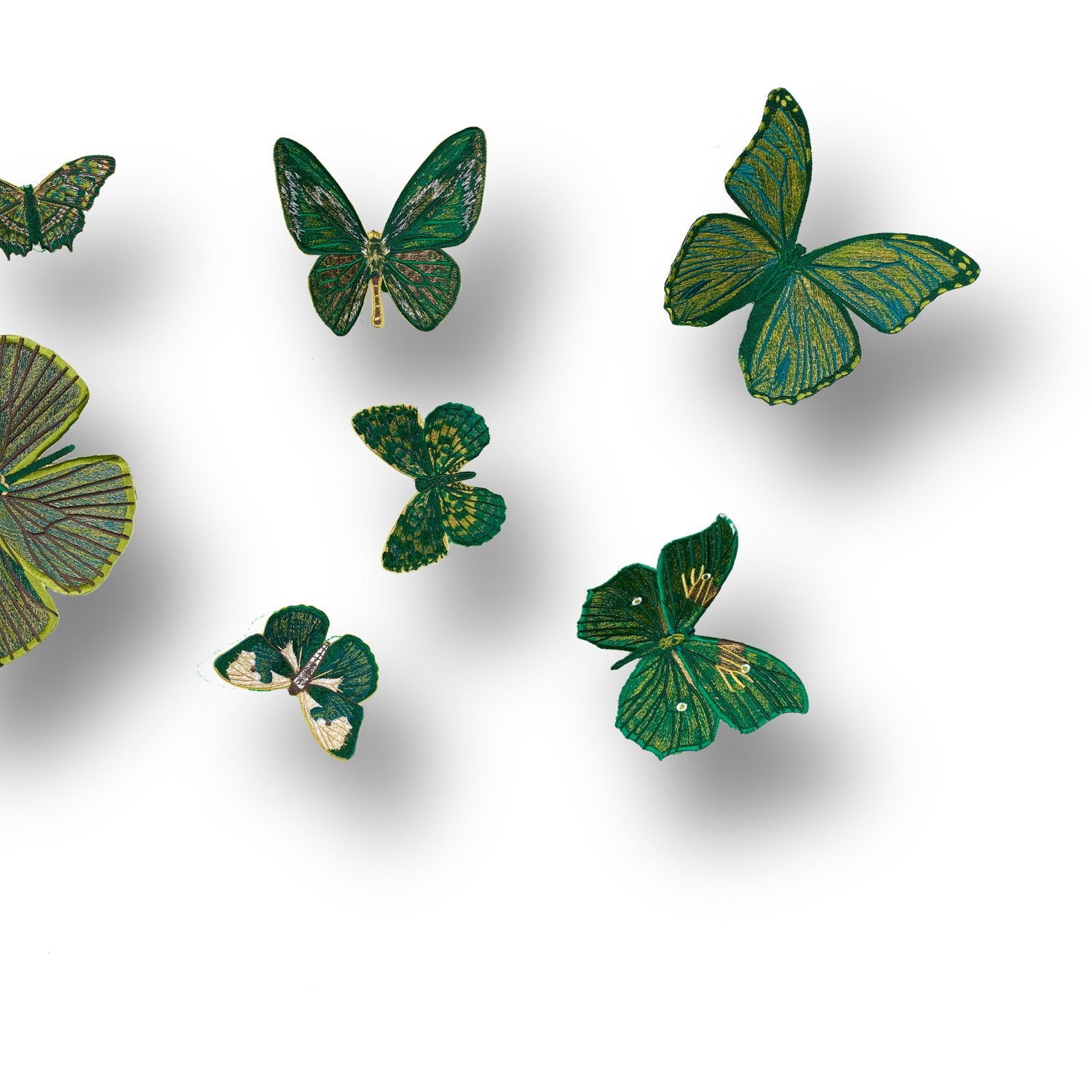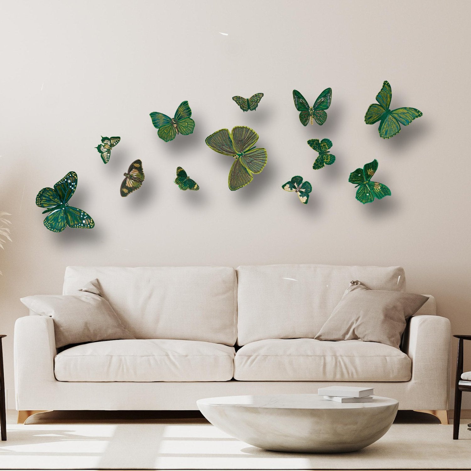 The butterflies come with a metal support that is attached to your wall with an anchor, once the anchor is attached to your wall the butterflies are threaded in place. Installation is a breeze and if you decide to move them later you simply unscrew the butterfly and remove the base.