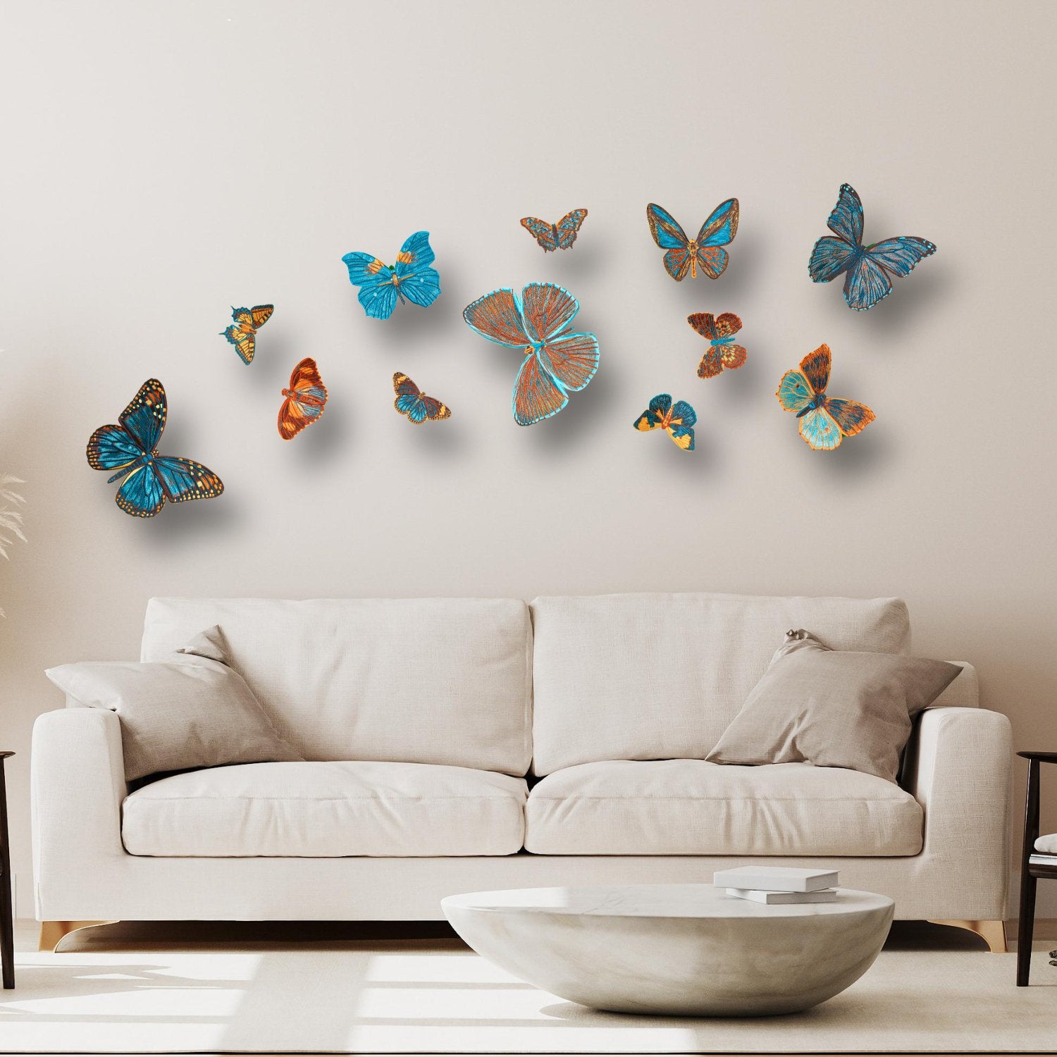 The Santa Fe colors are rust, gold, turquoise and teal mixed with neutrals. If your space consists of neutral colors these butterflies are sure to pop.