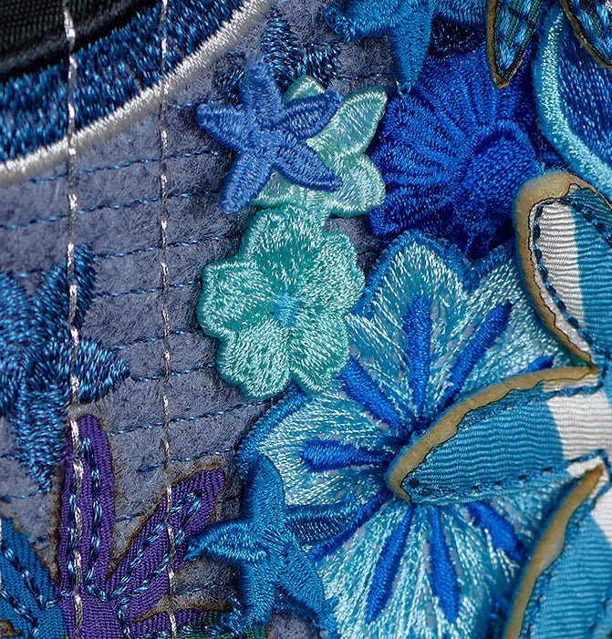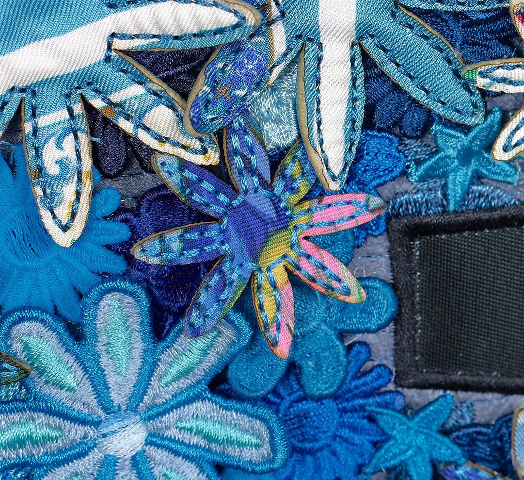 An exquisite blend of hand-digitized embroidery, collage and assemblage goes into each and every piece.