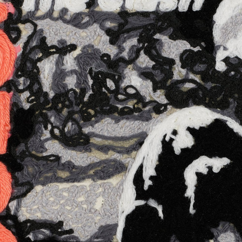 There are no music fans who grew up in the 70’s or the 80’s who weren’t fans of the Clash, each of their 6 studio albums were unique and musically different, the Clash merged punk, rock and roll and pop to truly create a unique sound. London Calling is my favorite Clash album so it was the first of their albums that I wanted to embroider. The graphics for the album are based on a self titled Elvis album from the 1950’s with a striking black and white image with graphic lettering down the side, The Elvis album was the first one of his that I created as well. I decided to use bold strokes of yarn embroidery to create both graphics and the typography on this piece.