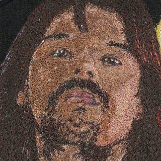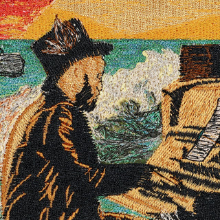 I spent months sourcing vintage record albums and created dozens of prototypes before finally designing these pieces. I hand-selected each album then set out to embroider them. To make the art, each thread must be hand-digitized using digital drawing tools on a scan of the actual album as a backdrop. Every stitch is drawn by hand, one at a time. The embroidery process itself is the most interesting and has to be seen to believe. Each album cover is embroidered directly through the actual paper sleeve.