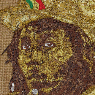 My work has always been about the medium of fabric and thread and how far I can push those in both conventional and unconventional methods. Since the conventional use of thread and embroidery has been seen in wearables, fashion has always been a major influence in my work. In addition to fashion, music has always been a leading influence in my life and for my work. I grew up in the 1970’s and music was all about record albums. This was before the Internet, iPods, CDs, or streaming.