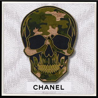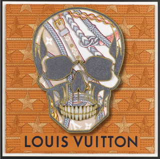 Fully embroidered, the skull harbors over 200,000 meticulously hand-placed stitches, infusing each element with care and intention. Its dimensionality is crafted through a multi-layered approach, enhancing its presence as a captivating visual experience.