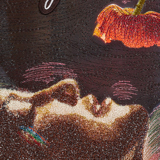 The albums take up to 8 hours to embroider and can contain over 200,000 stitches. The series is created and designed to be hung together so you can add to your installation wall as you discover new pieces I create. Each of the albums comes with a signed certificate and is framed in acrylic and measures 12" x 12" x 2".