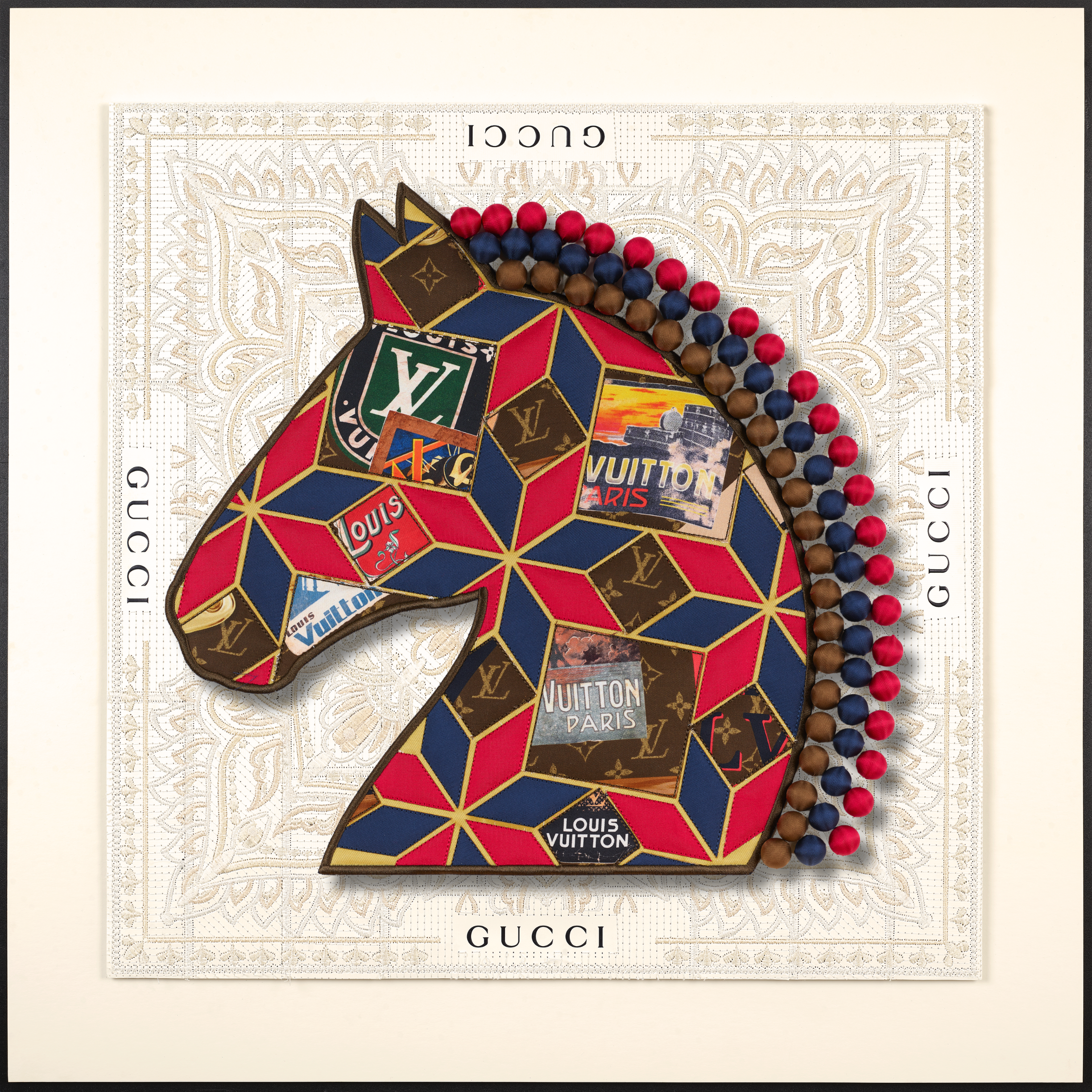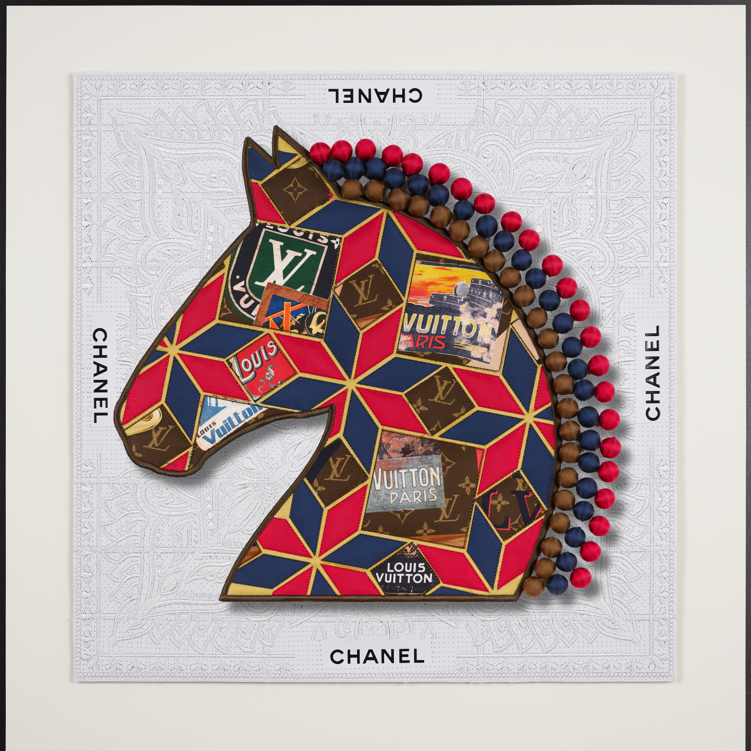An exquisite blend of hand-digitized embroidery, collage and assemblage goes into each and every piece.