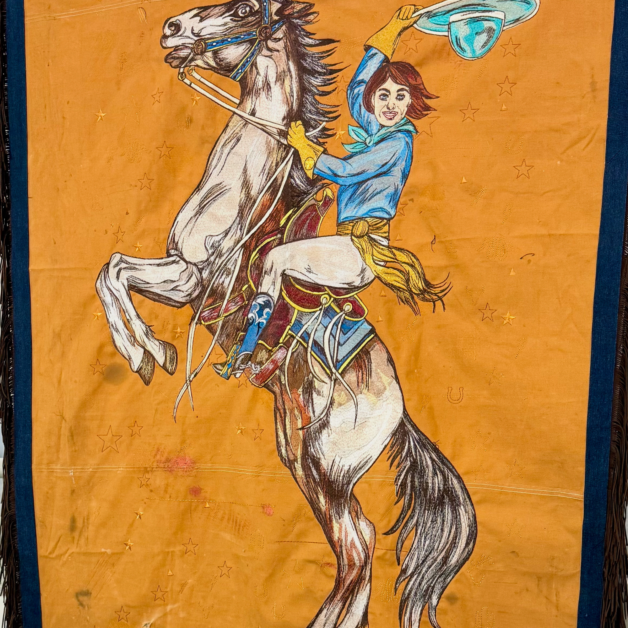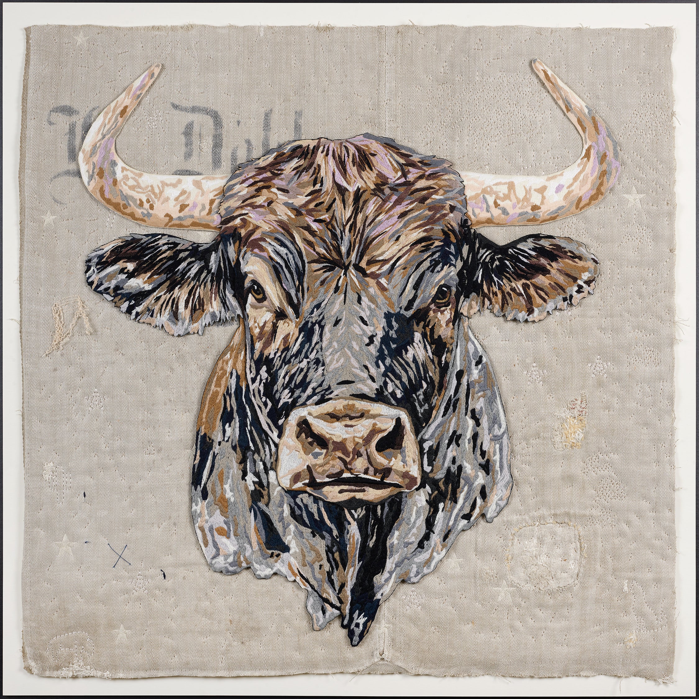 Our bold new series that redefines the Western motif through a gritty, textured lens. We're diving into the rugged past, excavating vintage fabrics—nearly a century old—that once clothed cowboys, ranchers, and pioneers. From feed bags and sacks to tarps, tents, and even luxury goods, each material is meticulously deconstructed, quilted, embroidered, and embellished with stitches that whisper stories of a bygone era. These aren’t just artworks—they're portraits carved from history, with some pieces boasting up to a million stitches and spanning 30 hours of painstaking craftsmanship. Varied in technique and presentation, some are encased in sleek acrylic for a contemporary edge; others honor vintage traditions with antique frames. This is more than art—it's a gritty homage to the wilderness, resilience, and craftsmanship of the American West. And this is just the beginning; more compelling pieces are on their way.