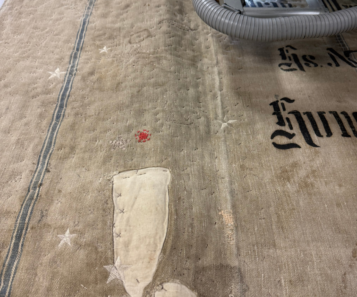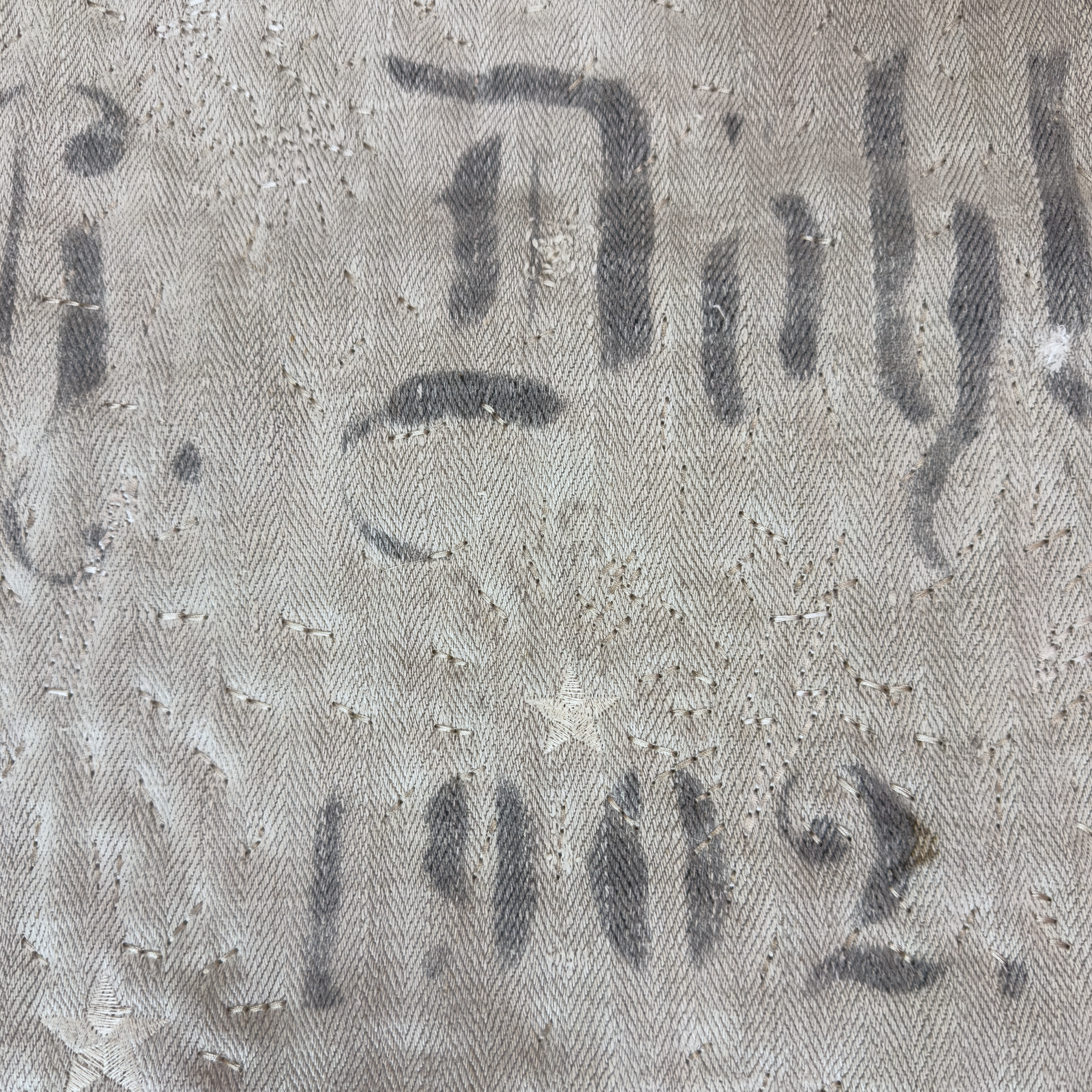 The fabric for this piece was a feed bag from 1938. The mending looks like it was doen 50 years ago.