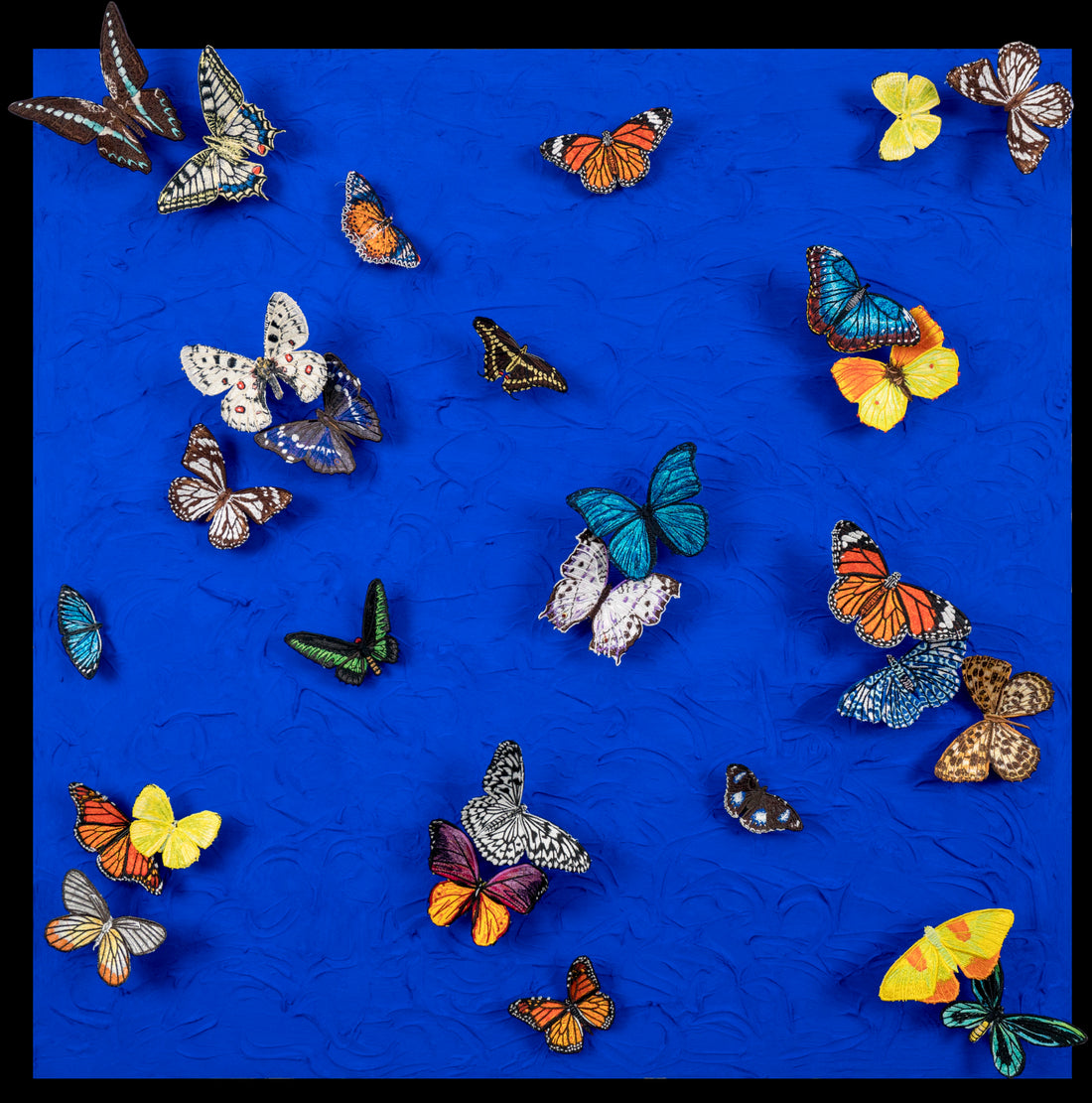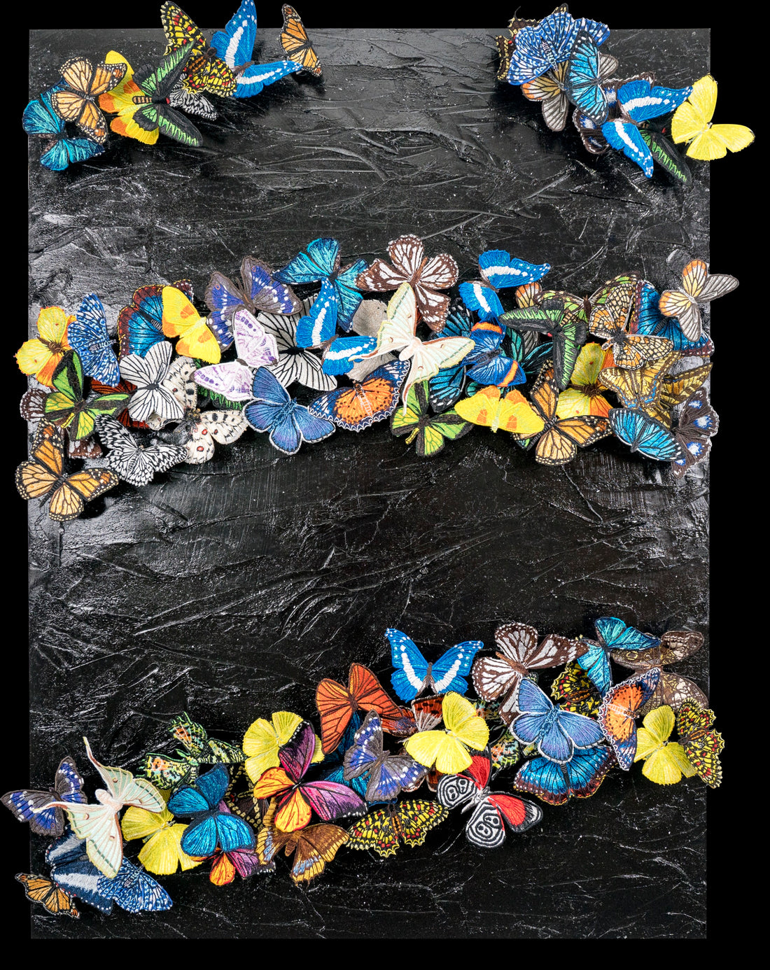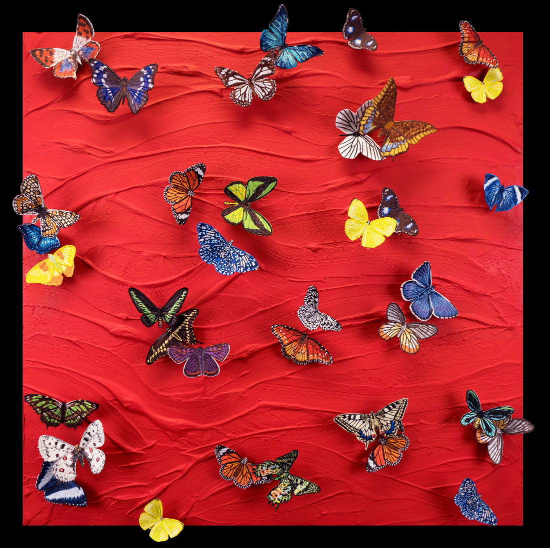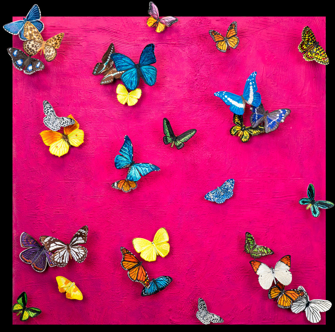 This is one of the first pieces I painted for this series. Most of the pieces in this series started with a painted background and then after months of drying, the butterflies were added. Waiting for the piece to dry was the hardest part, there were dozens of wet canvases hanging everywhere for this series.