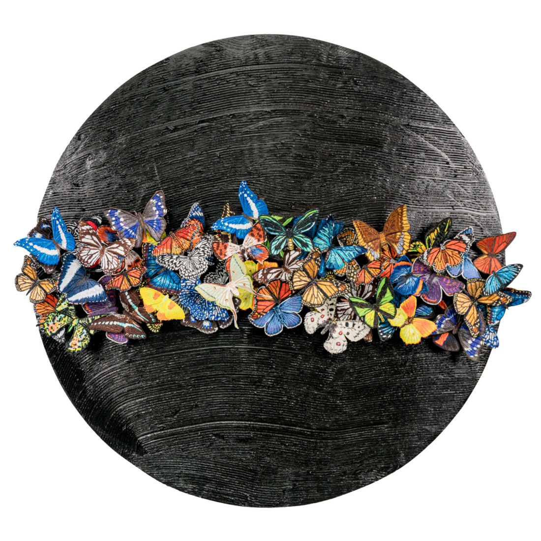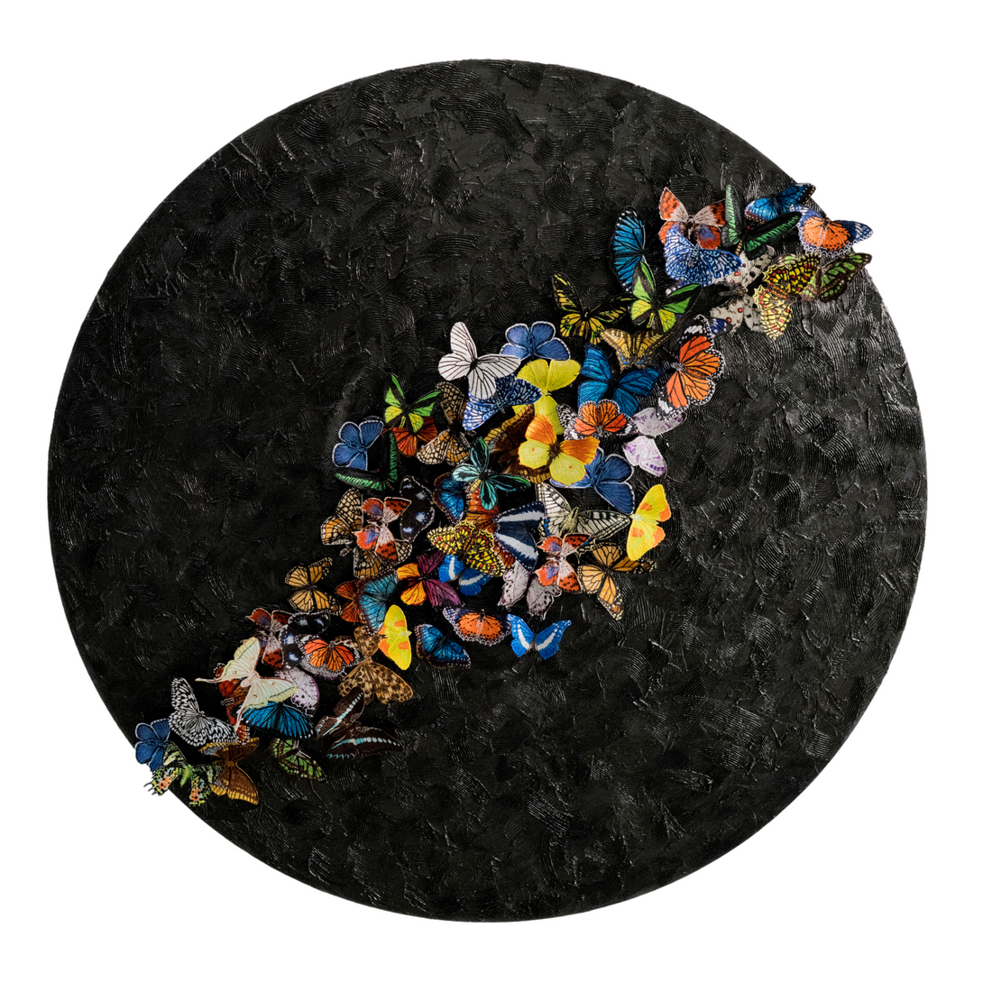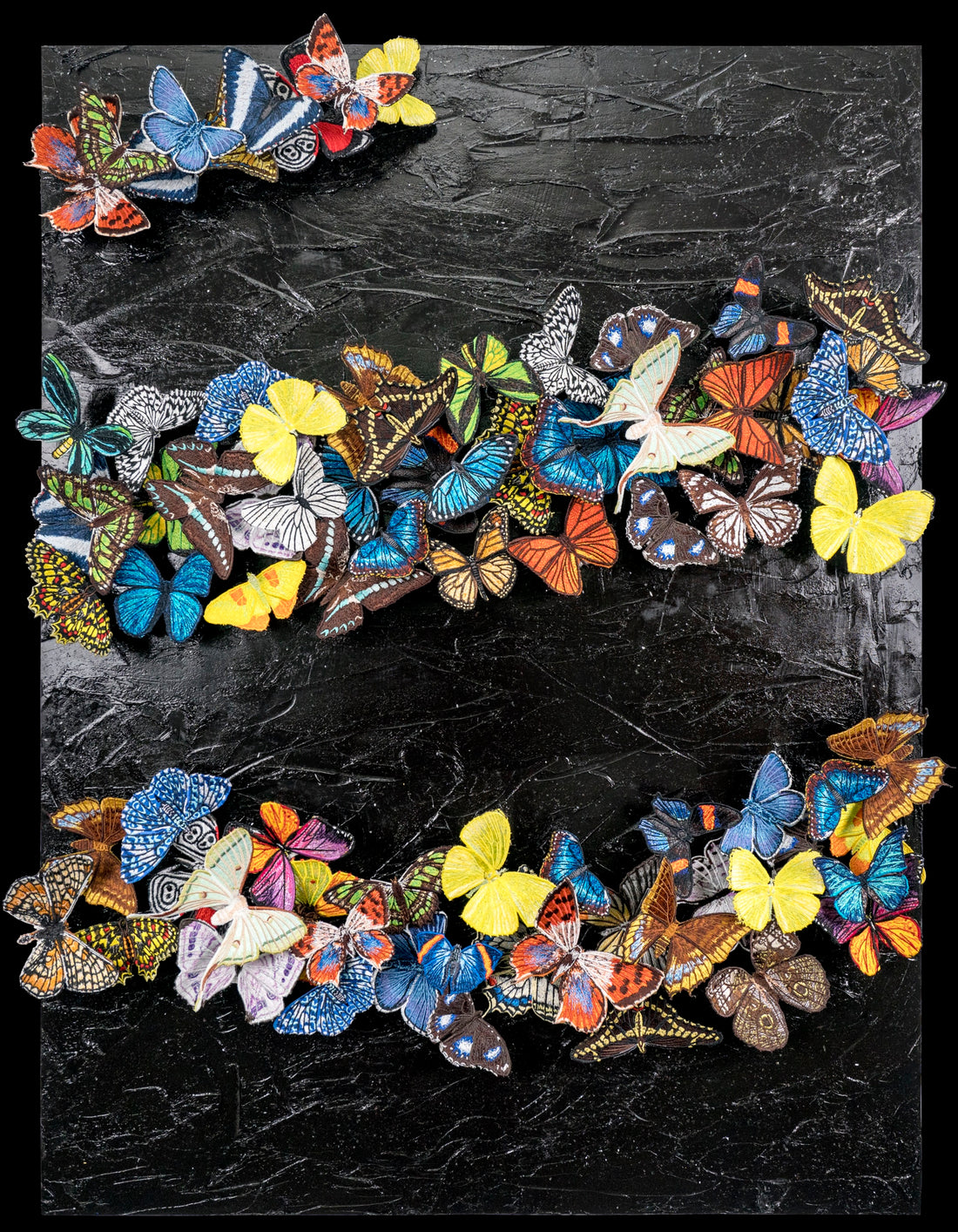 This is one of the first pieces I painted for this series. Most of the pieces in this series started with a painted background and then after months of drying, the butterflies were added. Waiting for the piece to dry was the hardest part, there were dozens of wet canvases hanging everywhere for this series.