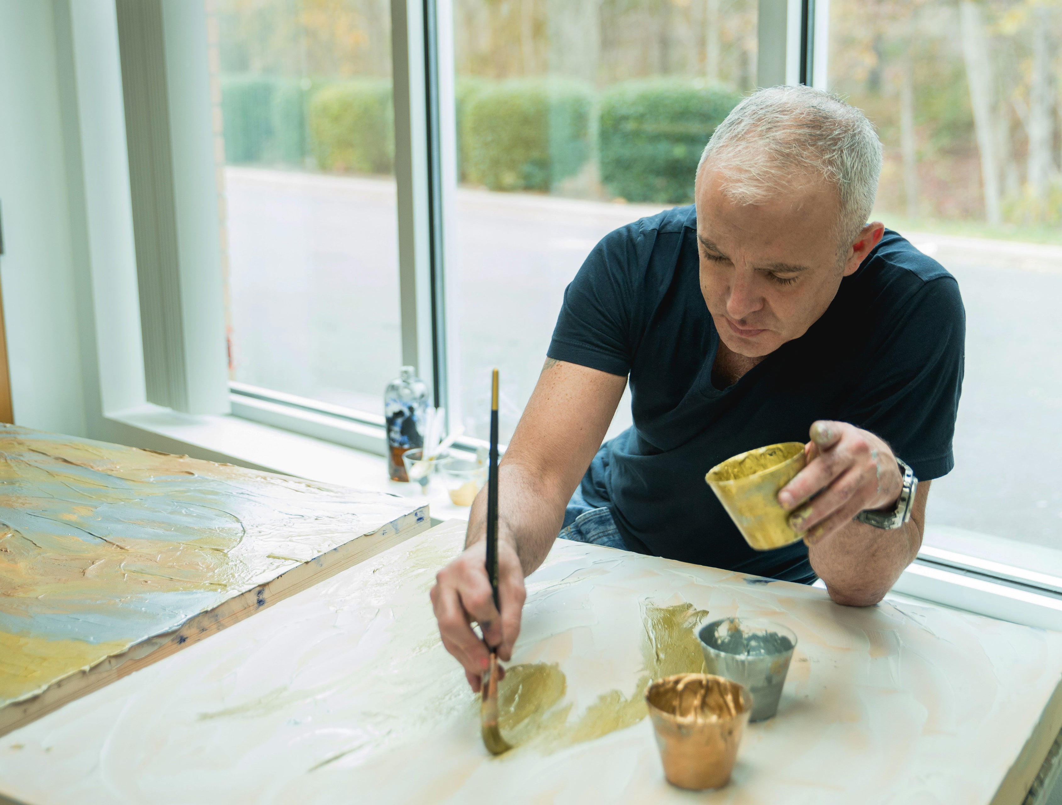 Instead of oil painting I used raw pigment to achieve the look on the brighter pieces. When painting with pigment, the paint dries in seconds, leaving little time to fix errors. However, the color when its finished is breathtaking. These are the brightest pieces that I have ever created.