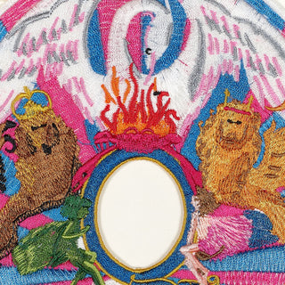 The album series begins with a vintage album sleeve, which serves as the foundation for intricate designs created with a variety of techniques such as yarn embroidery and photorealistic embroidery. Each album is carefully embroidered with over 200,000 stitches, taking more than 8 hours to complete. Upon completion, the album is adorned with embroidered patches and other decorative objects, making each one truly unique. With over 300 albums in the collection, they make for an exquisite gallery wall, showcasing your love for art and music.