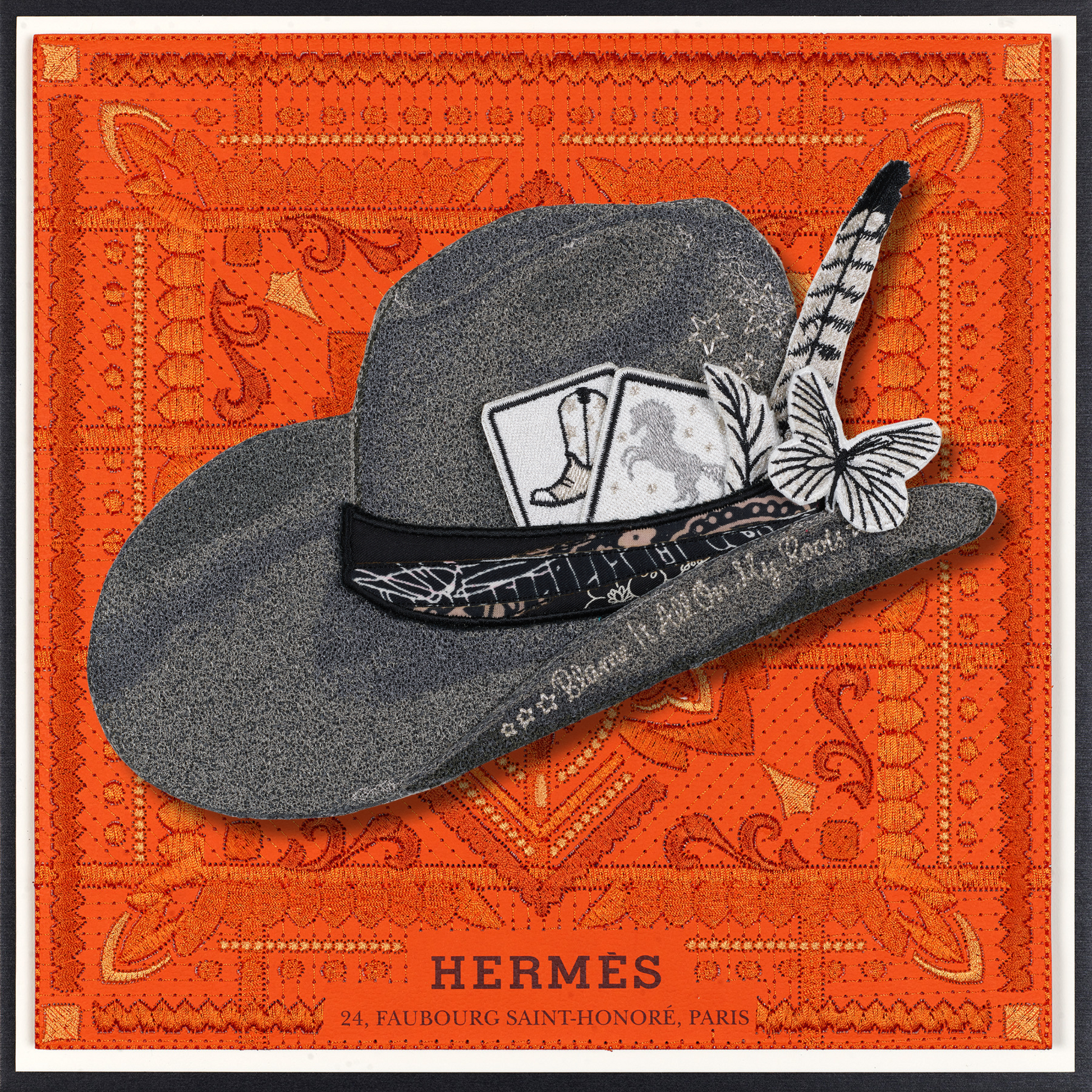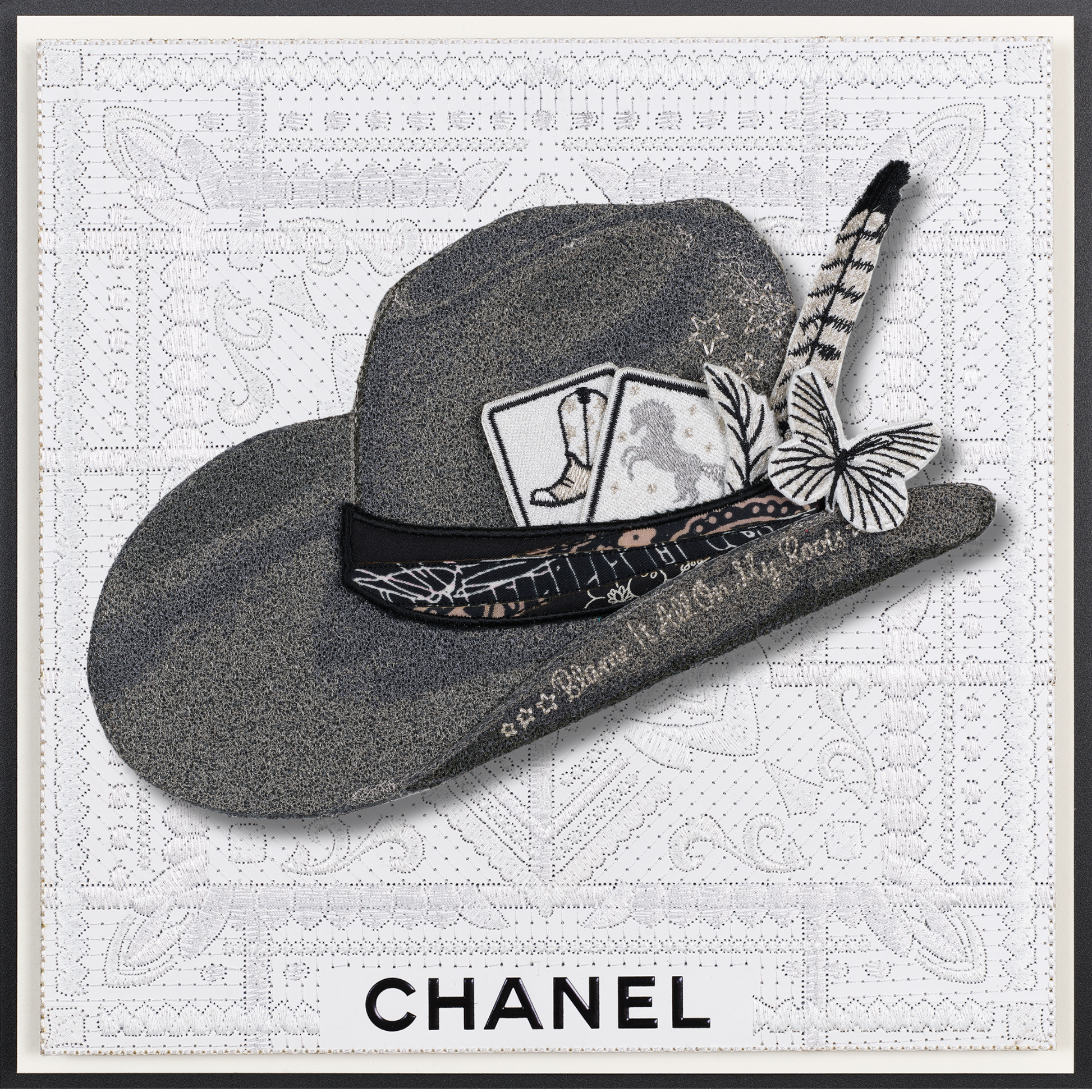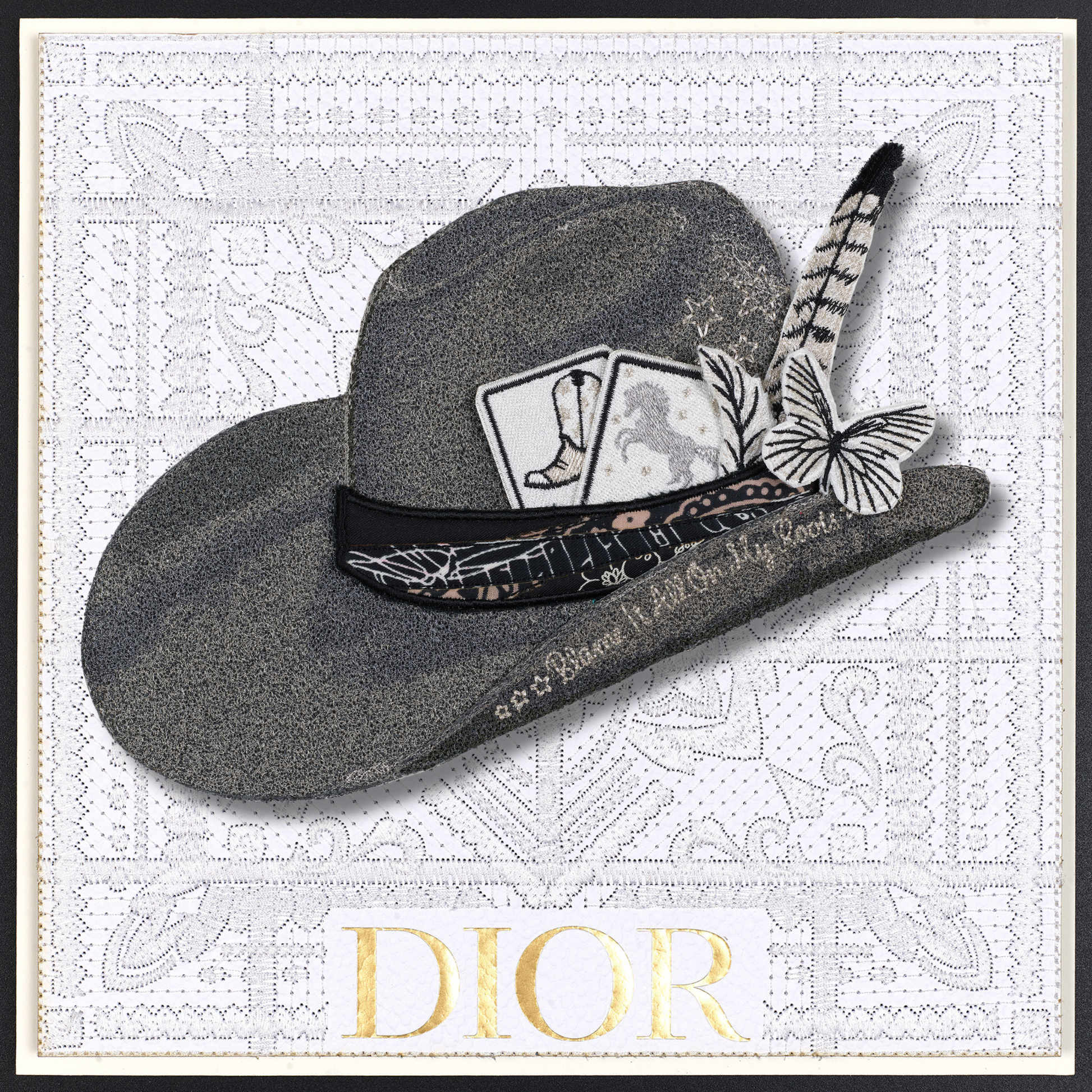 Experience the exclusive allure of the revamped Aspen Hat, a creation inspired by my national hat bar pop-ups. Every element—from the colors and cards to the feathers, knives, and butterflies—has been meticulously hand-selected and crafted for this bespoke piece. With intricate embroidery detailing every aspect, you can personalize it further by selecting your own background. Each Aspen Hat is a one-of-a-kind masterpiece, ensuring that your combination is truly distinctive.