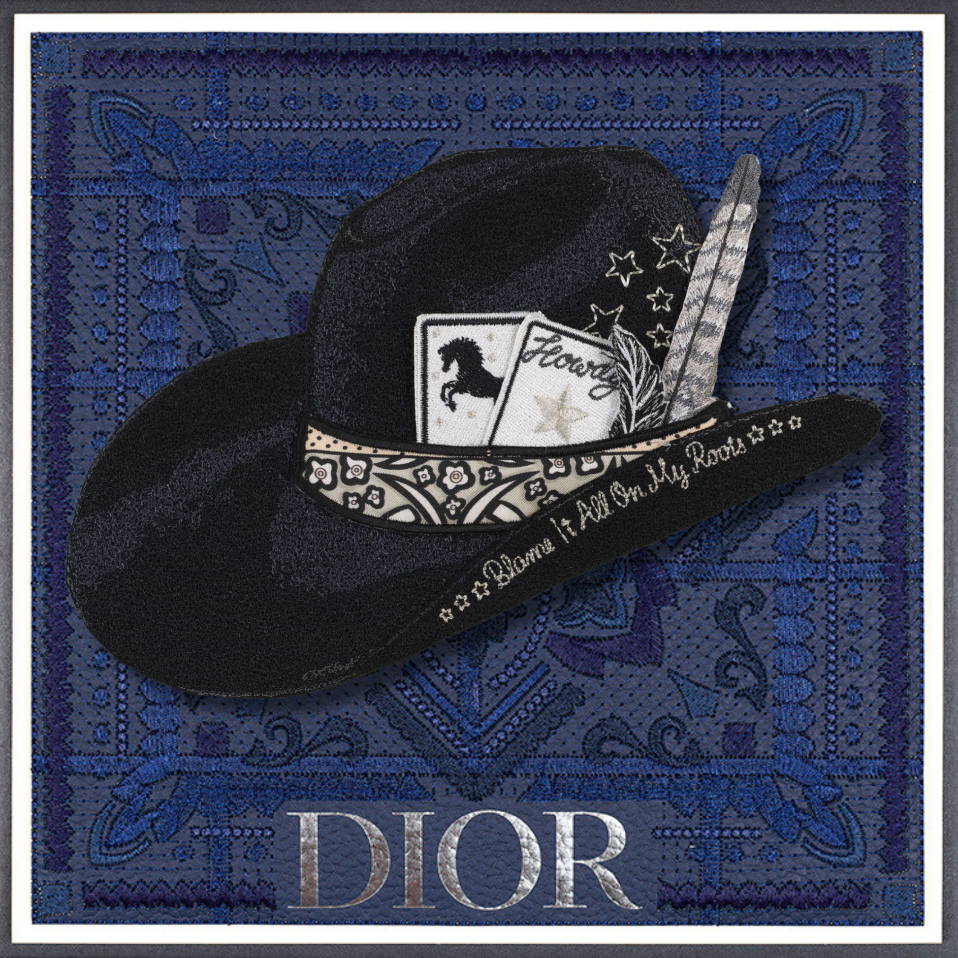 Experience the exclusive allure of the revamped Aspen Hat, a creation inspired by my national hat bar pop-ups. Every element—from the colors and cards to the feathers, knives, and butterflies—has been meticulously hand-selected and crafted for this bespoke piece. With intricate embroidery detailing every aspect, you can personalize it further by selecting your own background. Each Aspen Hat is a one-of-a-kind masterpiece, ensuring that your combination is truly distinctive.