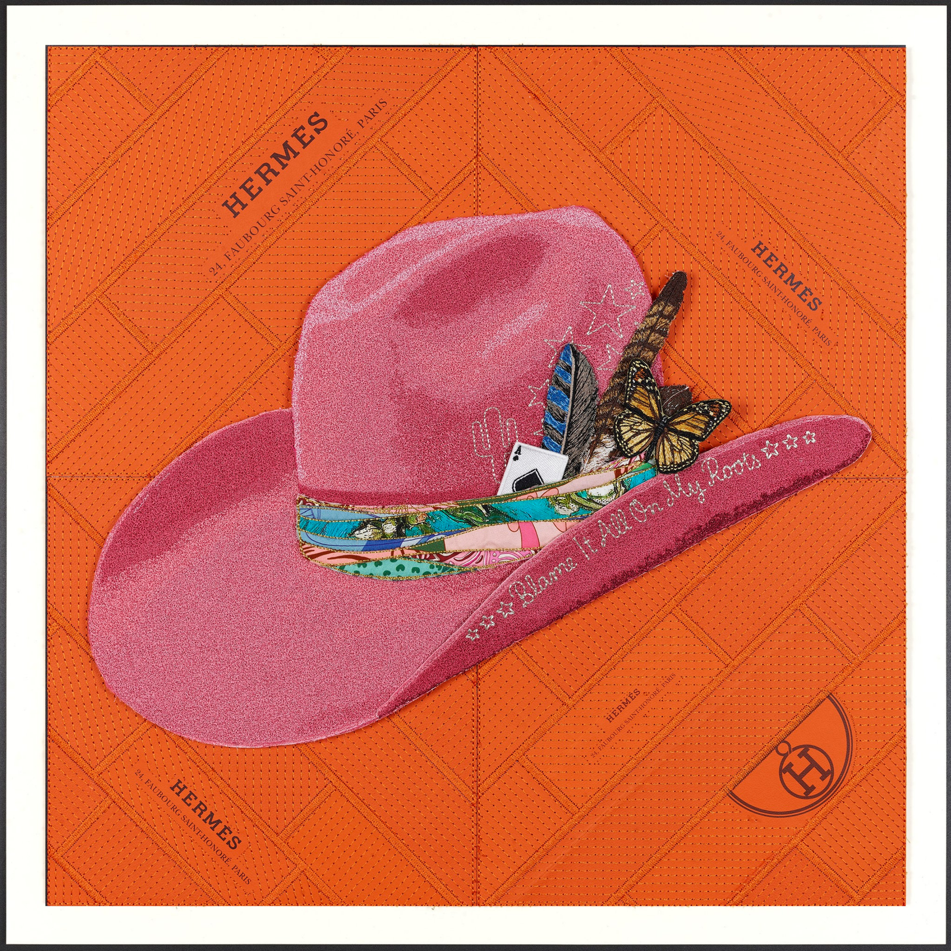 I have been always fascinated by embellishing and decorating objects as you can tell from all of my work. When you watch someone create a custom cowboy hat it is truly fascinating, from the steaming, molding and burning to the embellishing with hat bands, branding, jewelry and objects. I wanted to create my own version of the cowboy hat with embroidery and I wanted to make it a work of art while keeping all of the options of a custom cowboy hat.