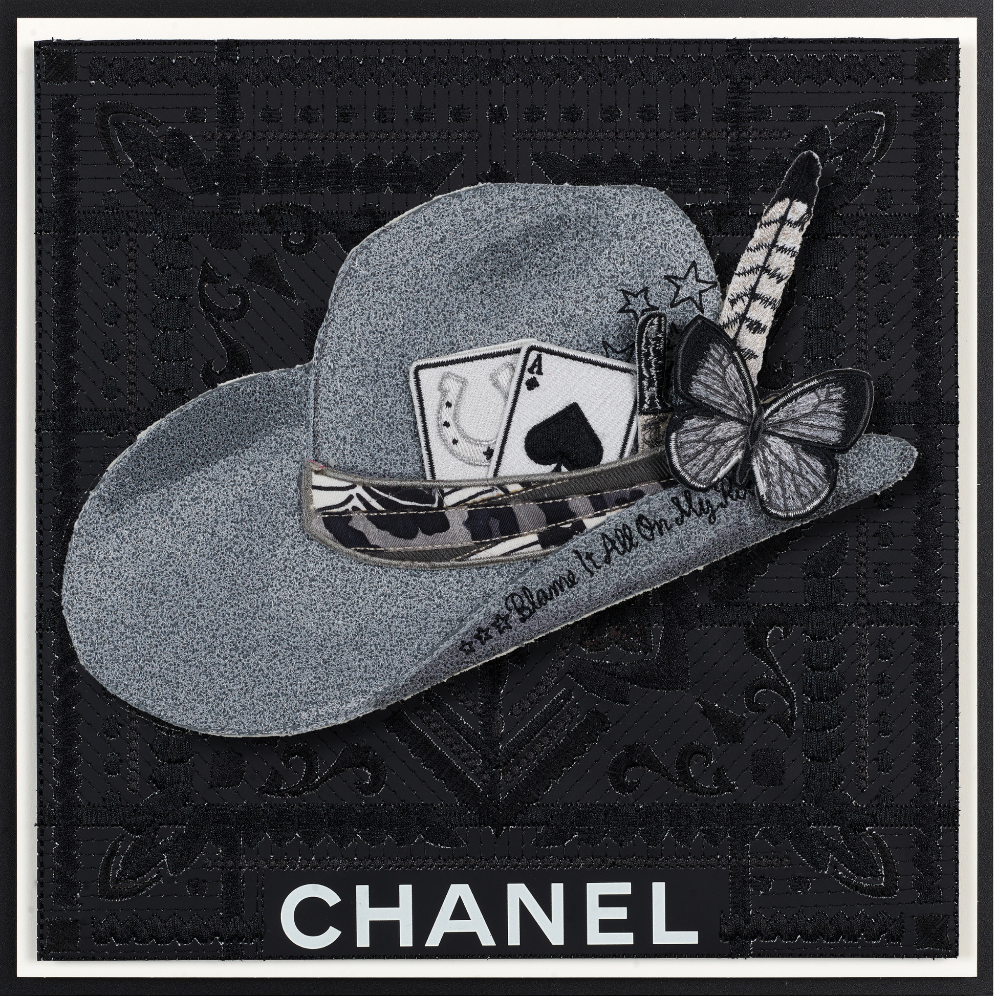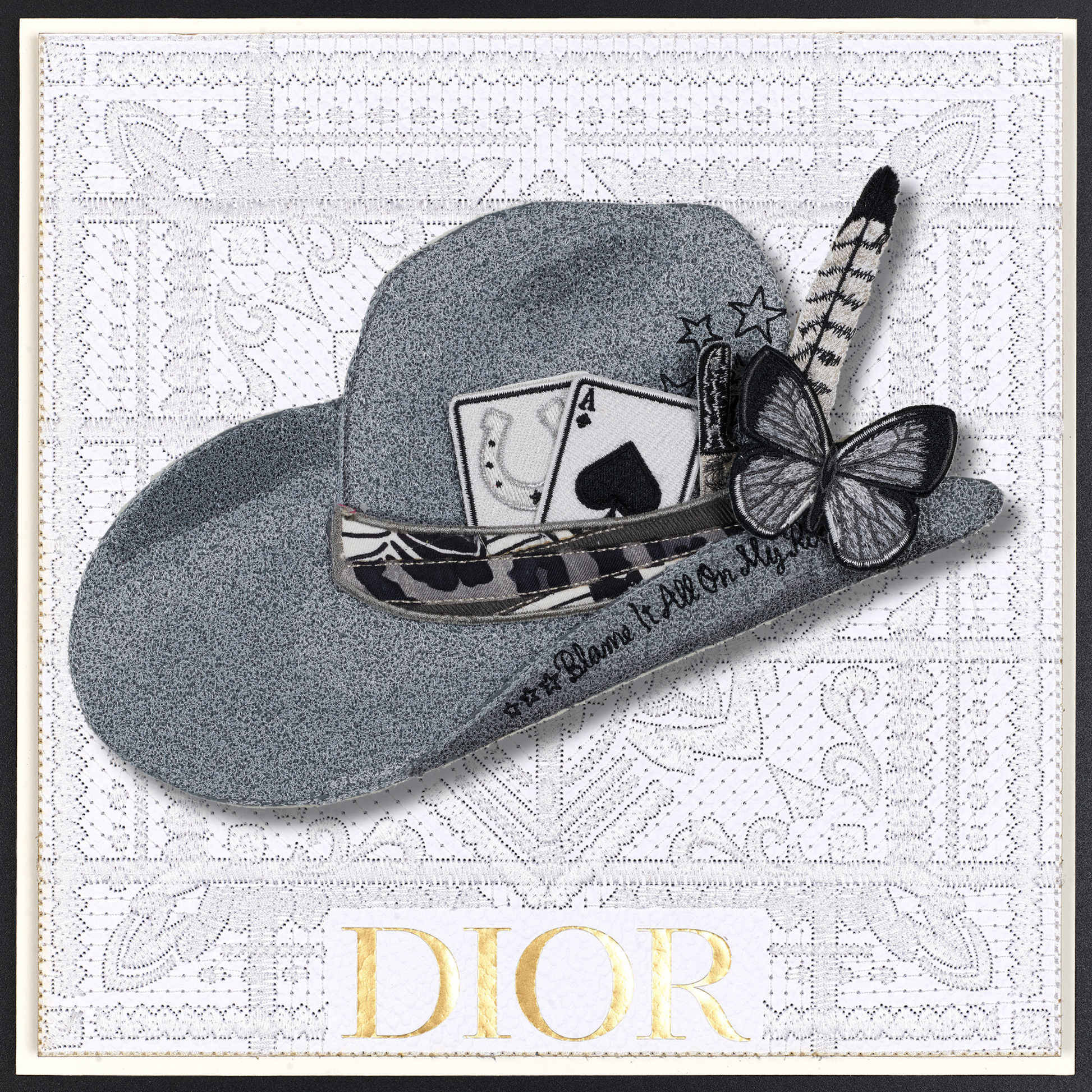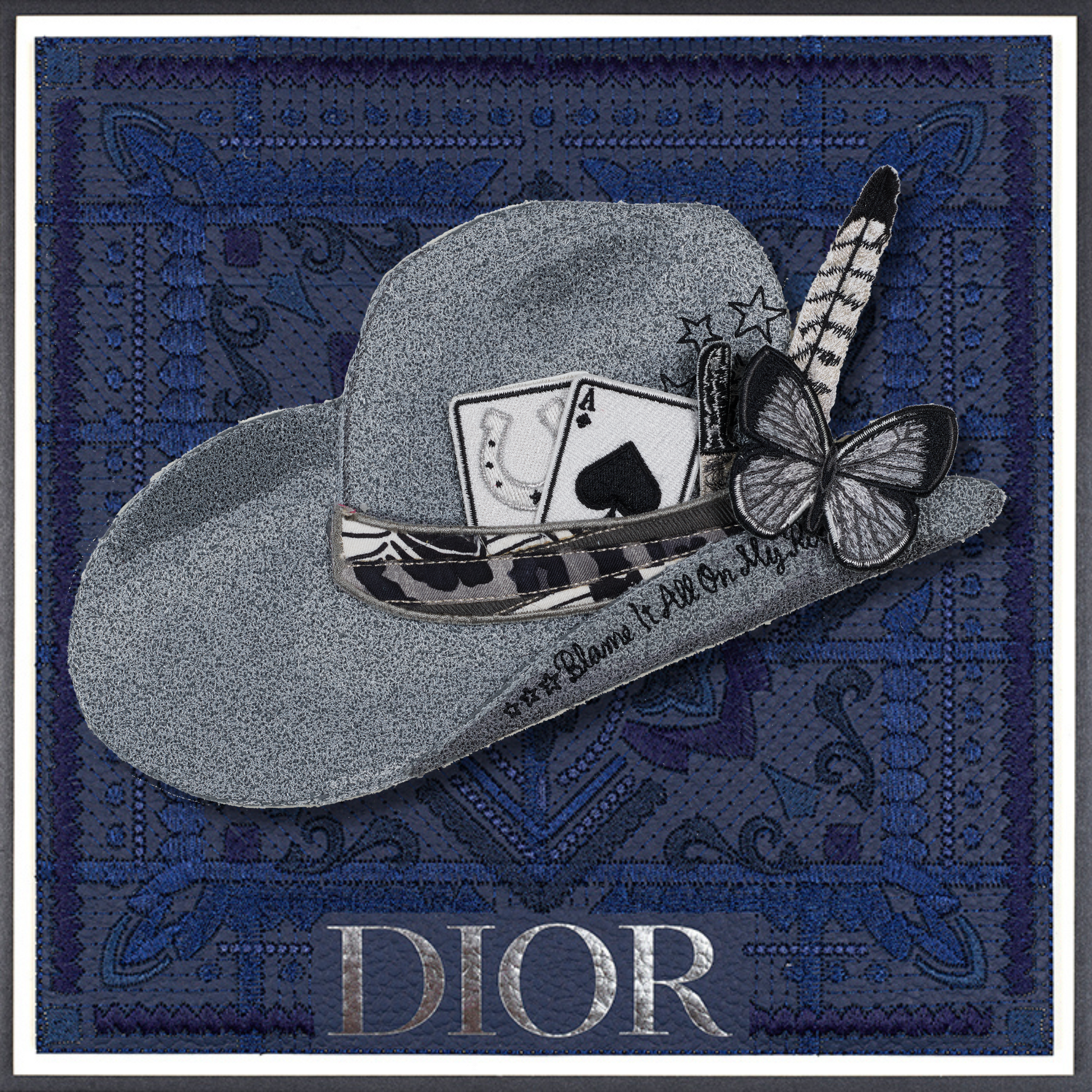 Experience the exclusive allure of the revamped Aspen Hat, a creation inspired by my national hat bar pop-ups. Every element—from the colors and cards to the feathers, knives, and butterflies—has been meticulously hand-selected and crafted for this bespoke piece. With intricate embroidery detailing every aspect, you can personalize it further by selecting your own background. Each Aspen Hat is a one-of-a-kind masterpiece, ensuring that your combination is truly distinctive.