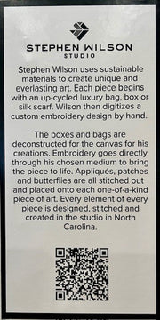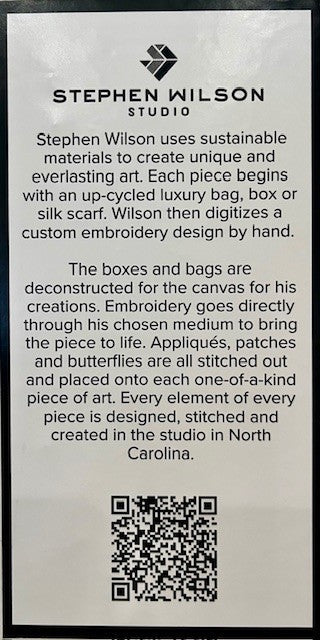 An exquisite blend of hand-digitized embroidery, collage and assemblage goes into each and every piece.