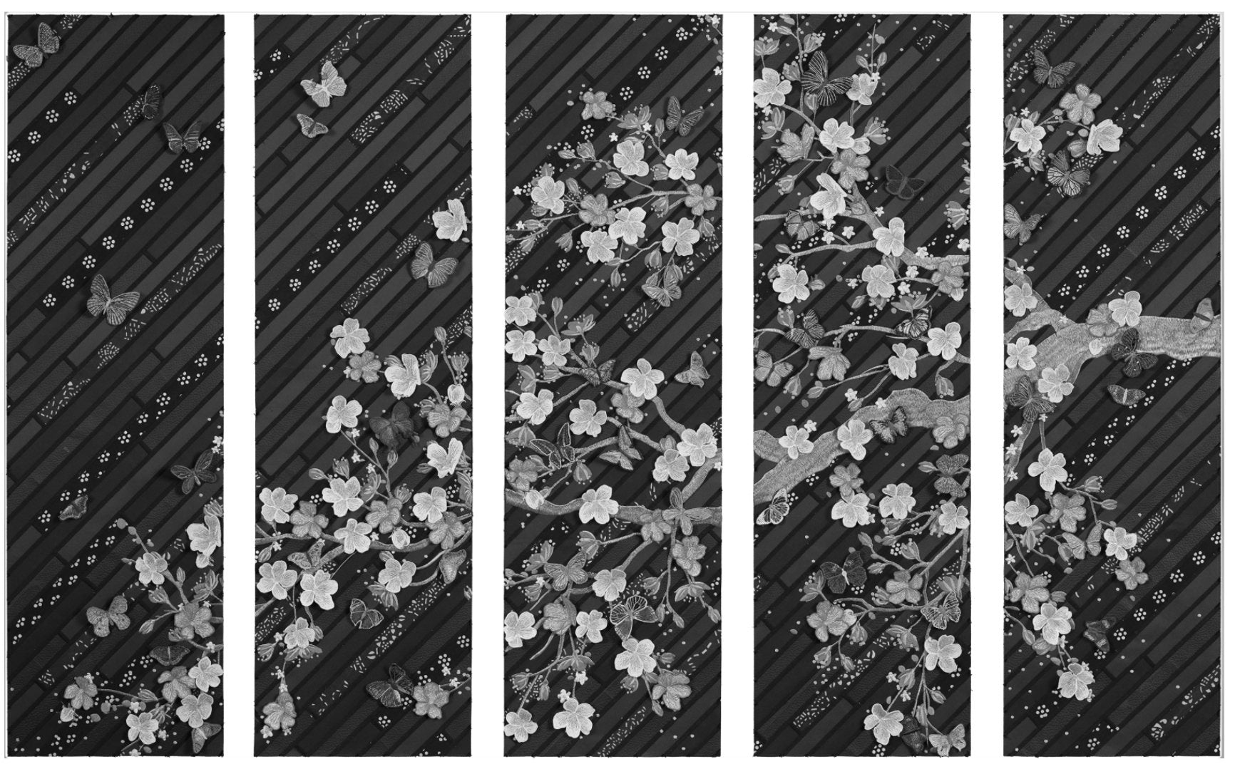 An exquisite blend of hand-digitized embroidery, collage and assemblage goes into each and every piece.
