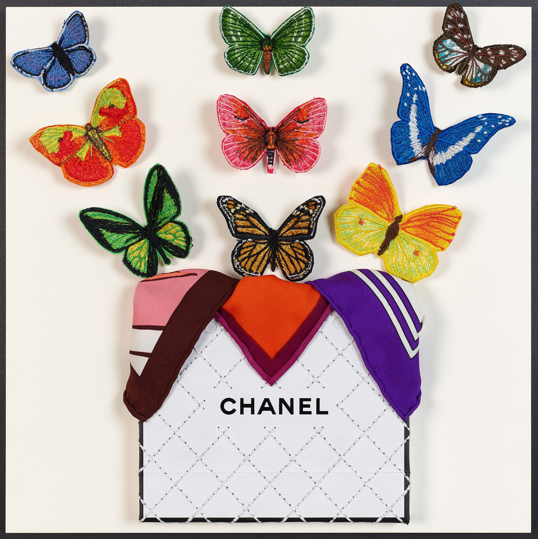 An exquisite blend of hand-digitized embroidery, collage and assemblage goes into each and every piece.