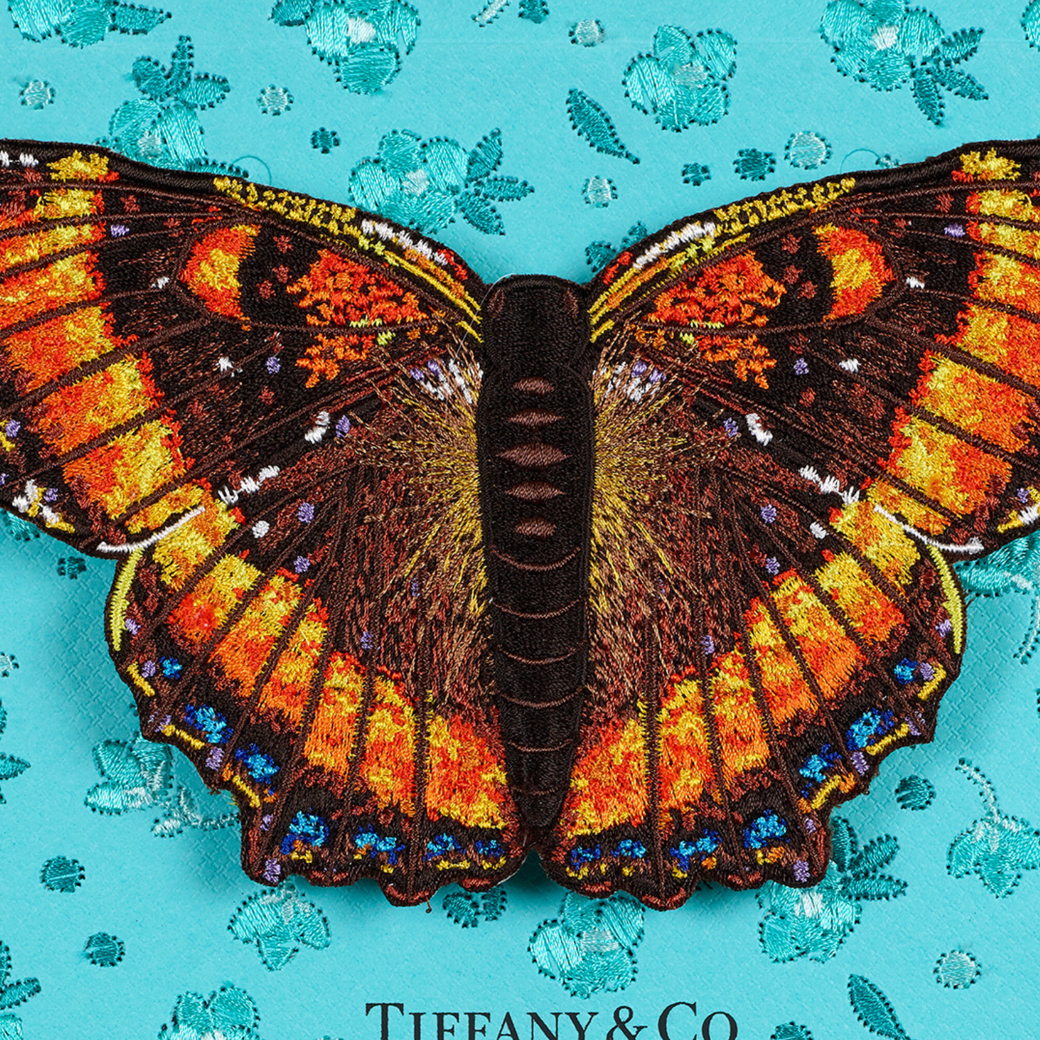 The Butterfly pieces start with up-cycled luxury boxes or shopping bags that are trimmed into the background shape and then embroidered. The embroidery is stitched directly through the actual box itself. Each background features intricate embroidery stitches that truly make each one unique. The realistic embroidered butterfly is hand trimmed and mounted in relief over the background.