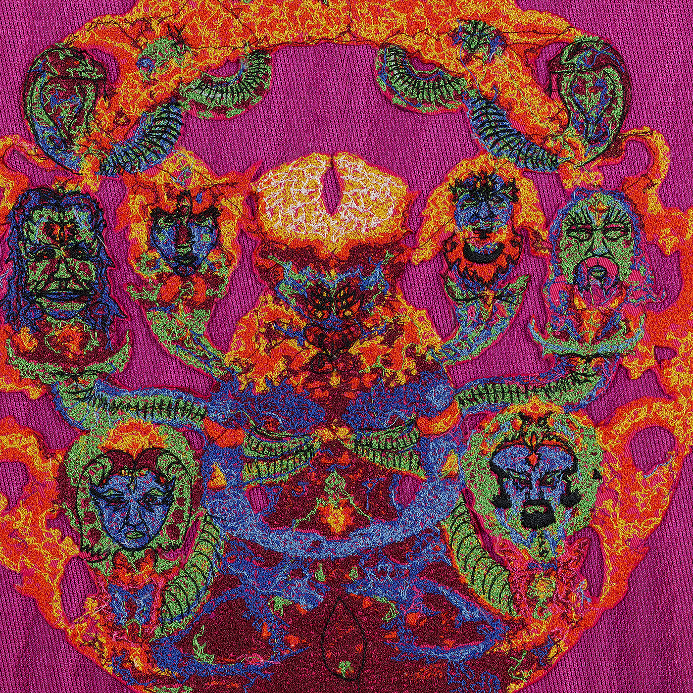 An exquisite blend of hand-digitized embroidery, collage and assemblage goes into each and every piece.