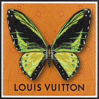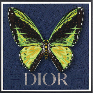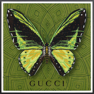 Stephen Wilson expertly crafts extraordinary and timeless designs using sustainable materials. Each art piece embarks on a journey, starting with an up-cycled luxury bag, box, silk scarf, or album. Wilson meticulously creates a bespoke embroidery design, delicately intertwining every stitch by hand. Once the design, colors, and elements are meticulously selected, the artistic process advances to the assembling stage. The boxes and bags undergo a mesmerizing transformation, metamorphosing into captivating canvases for Wilson's creations. The embroidery is seamlessly integrated into the chosen medium, unveiling a captivating texture that breathes life into the artwork. Appliqués, patches, and butterflies are individually stitched out, meticulously crafted, and delicately placed on each piece, culminating in a truly distinctive and unparalleled masterpiece. Finally, each artwork is beautifully presented, encased in an acrylic frame, ready to enchant all who behold it.