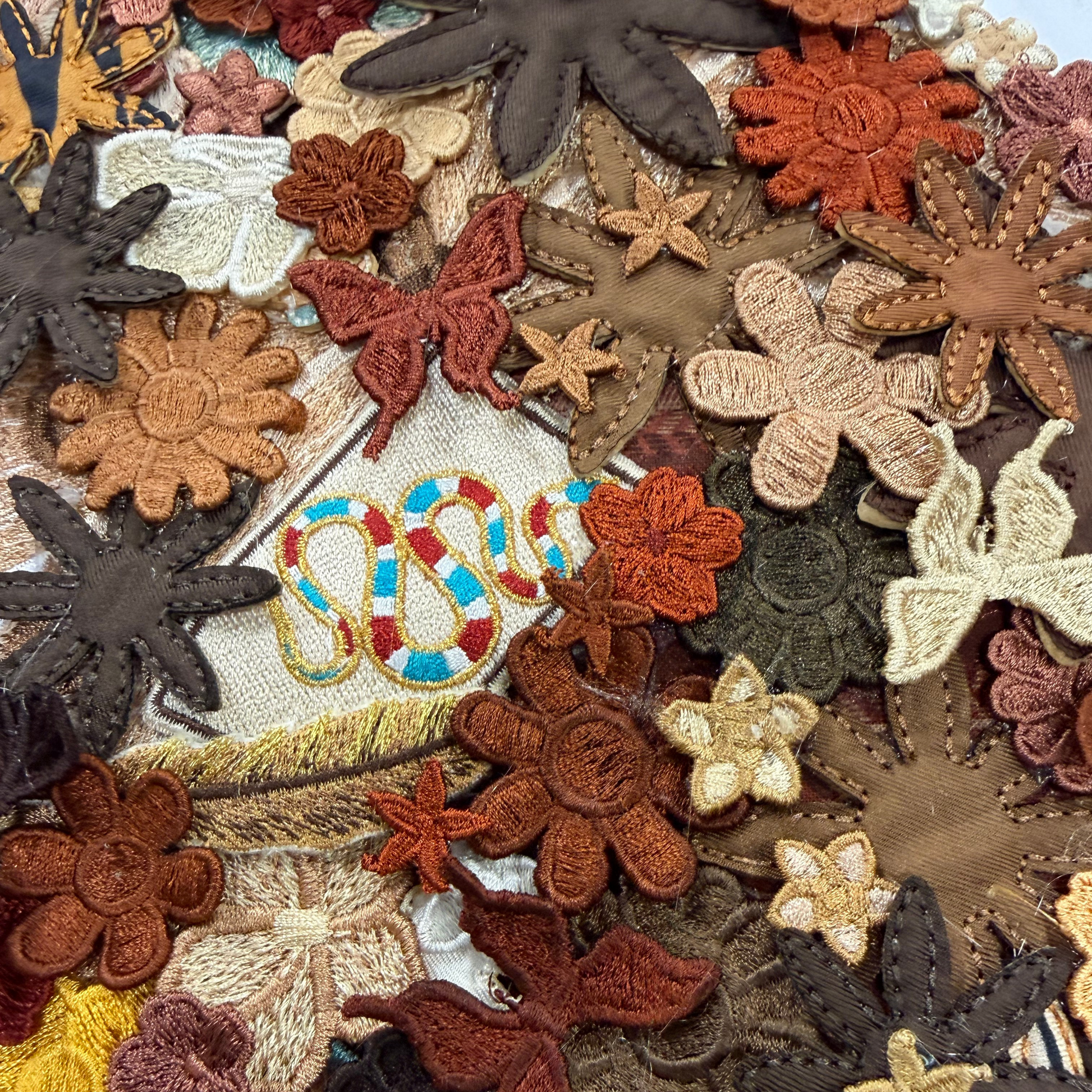 An exquisite blend of hand-digitized embroidery, collage and assemblage goes into each and every piece.