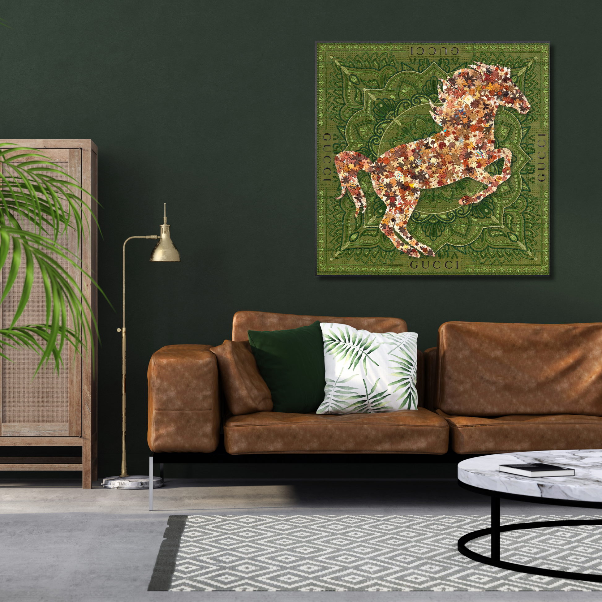 SKU:AS-GUCCI GREEN-40X40 caramel horse