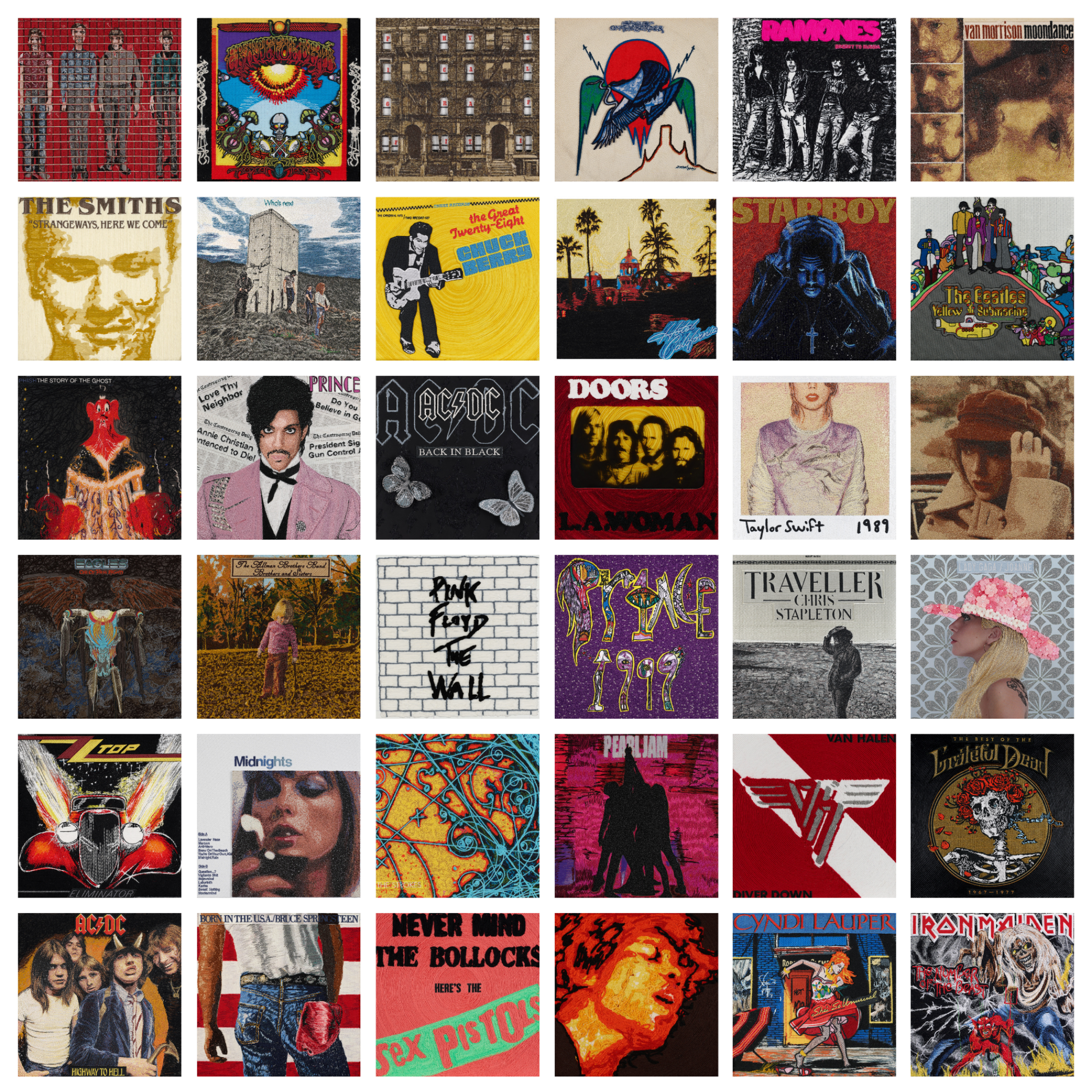 The album series begins with a vintage album sleeve, which serves as the foundation for intricate designs created with a variety of techniques such as yarn embroidery and photorealistic embroidery. Each album is carefully embroidered with over 200,000 stitches, taking more than 8 hours to complete. Upon completion, the album is adorned with embroidered patches and other decorative objects, making each one truly unique. With over 300 albums in the collection, they make for an exquisite gallery wall, showcasing your love for art and music.