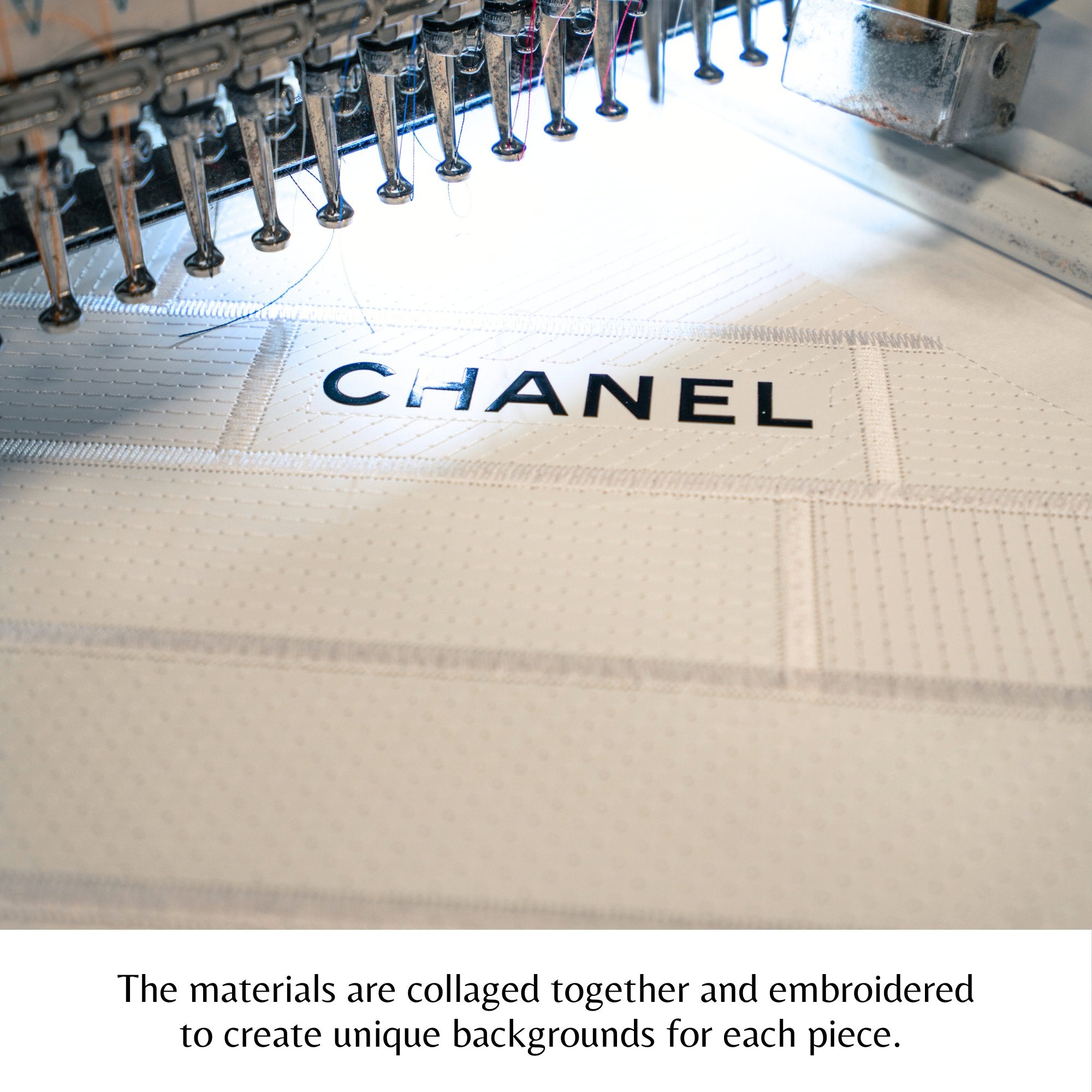 An exquisite blend of hand-digitized embroidery, collage and assemblage goes into each and every piece.