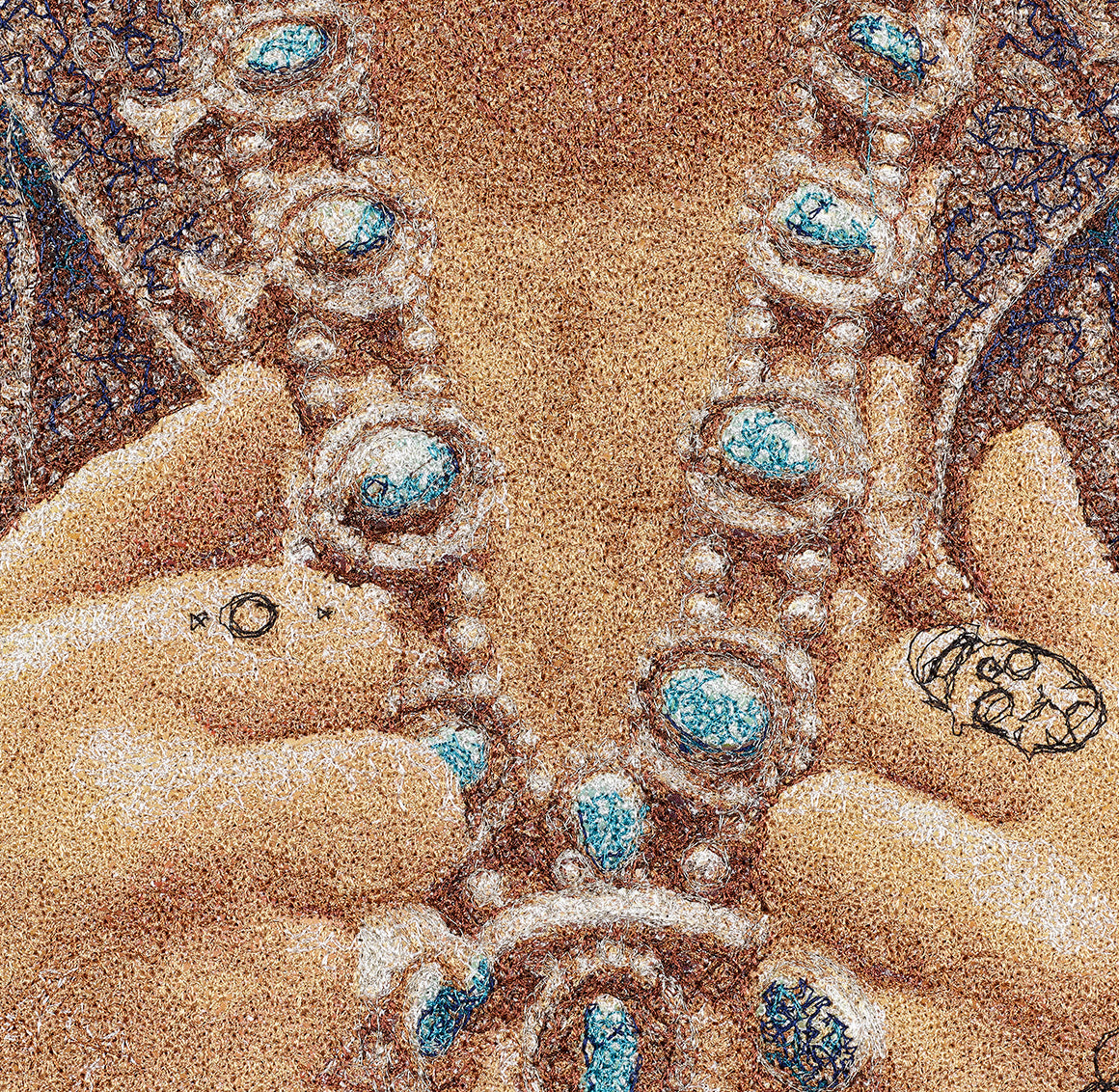 An exquisite blend of hand-digitized embroidery, collage and assemblage goes into each and every piece.