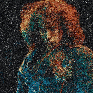 The album series begins with a vintage album sleeve, which serves as the foundation for intricate designs created with a variety of techniques such as yarn embroidery and photorealistic embroidery. Each album is carefully embroidered with over 200,000 stitches, taking more than 8 hours to complete. Upon completion, the album is adorned with embroidered patches and other decorative objects, making each one truly unique. With over 300 albums in the collection, they make for an exquisite gallery wall, showcasing your love for art and music.