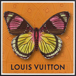 Stephen Wilson expertly crafts extraordinary and timeless designs using sustainable materials. Each art piece embarks on a journey, starting with an up-cycled luxury bag, box, silk scarf, or album. Wilson meticulously creates a bespoke embroidery design, delicately intertwining every stitch by hand. Once the design, colors, and elements are meticulously selected, the artistic process advances to the assembling stage. The boxes and bags undergo a mesmerizing transformation, metamorphosing into captivating canvases for Wilson's creations. The embroidery is seamlessly integrated into the chosen medium, unveiling a captivating texture that breathes life into the artwork. Appliqués, patches, and butterflies are individually stitched out, meticulously crafted, and delicately placed on each piece, culminating in a truly distinctive and unparalleled masterpiece. Finally, each artwork is beautifully presented, encased in an acrylic frame, ready to enchant all who behold it.