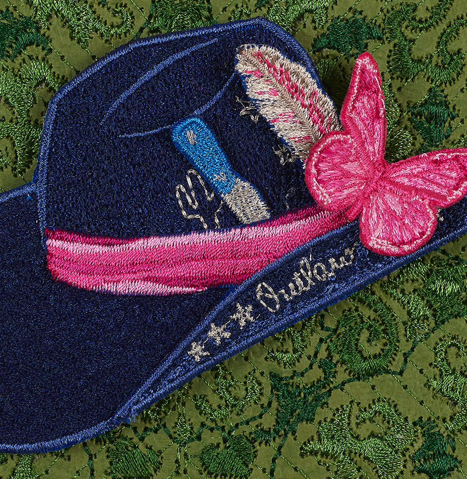 Western designs have always been part of the Studio vibe. The landscapes and iconography of cowboys, horses and Americana have been an inspiration since Stephen created his Americana series in 2018. The petites feature icons, horses, cacti and many other symbols created with yarn, embroidery and appliqué. The pieces all start with up-cycled luxury boxes or shopping bags that are trimmed into the background shape, collaged and then embroidered. The embroidery is stitched directly through the actual box itself. Each petite features intricate embroidery stitches that truly make each one unique. The western icons are then added in relief on the background truly making a three dimensional piece.