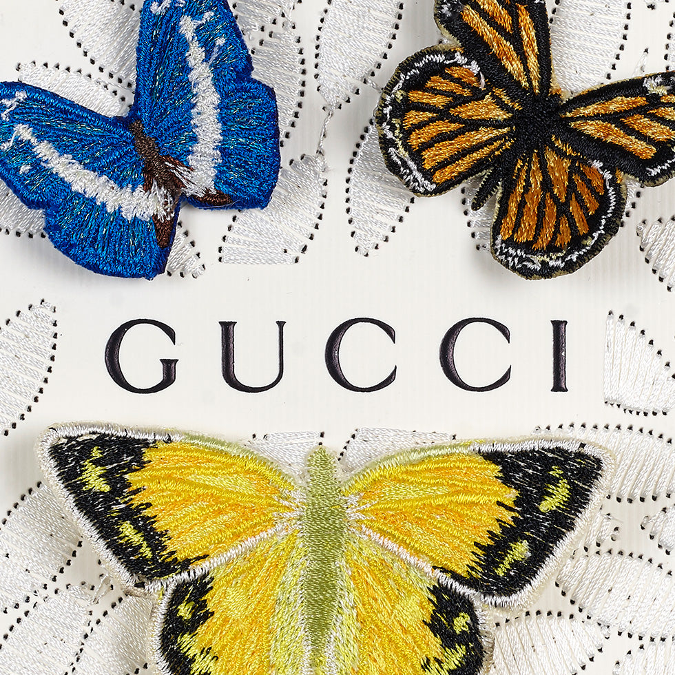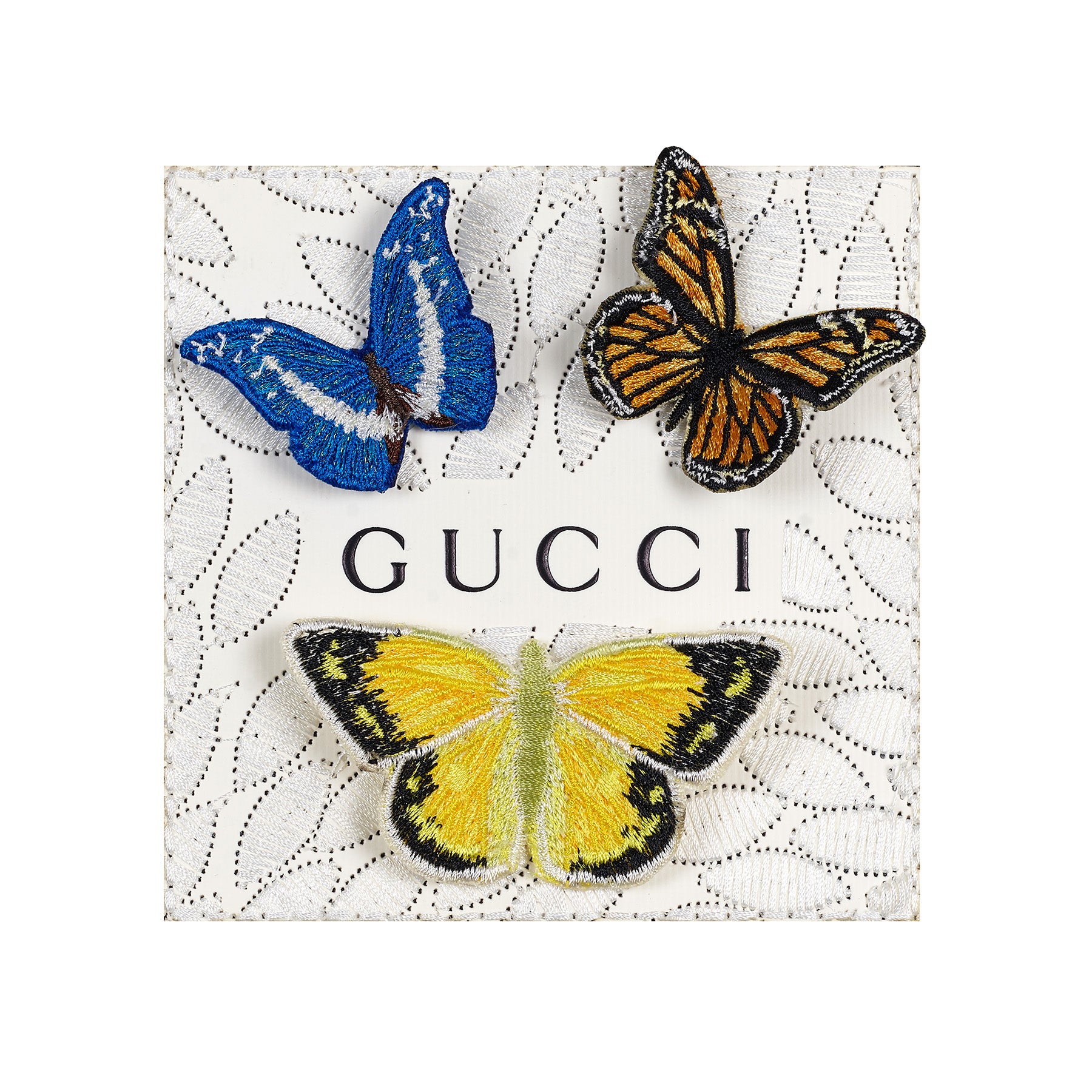 The petite swarms are a signature piece at the studio. They start with up-cycled luxury boxes or shopping bags that are trimmed into the background shape, collaged and then embroidered. The embroidery is stitched directly through the actual box itself. Each petite features intricate embroidery stitches that truly make each one unique. Nice the background is complete it is padded and mounted. The butterflies are all embroidered as well and are hand trimmed in our studio. Each butterfly is mounted in relief on the background for a truly unique, dimensional piece of artwork. The Butterfly Swarm petites would make the perfect gift for any art or fashion lover.