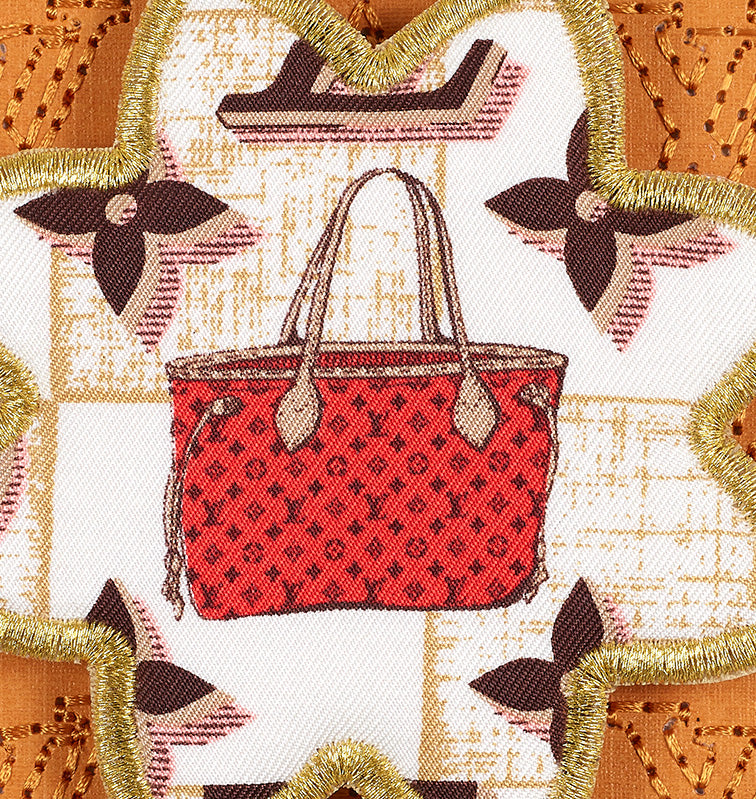 The Icon petites start with up-cycled luxury boxes or shopping bags that are trimmed into the background shape, collaged and then embroidered. The embroidery is stitched directly through the actual box itself. Each petite features intricate embroidery stitches that truly make each one unique. Once the background is complete it is padded and mounted. The icons themselves are embroidered using thread, appliqué or yarn and once embroidered are hand trimmed and mounted in relief over the background. The unique color combinations and textures truly make these pieces stand out.