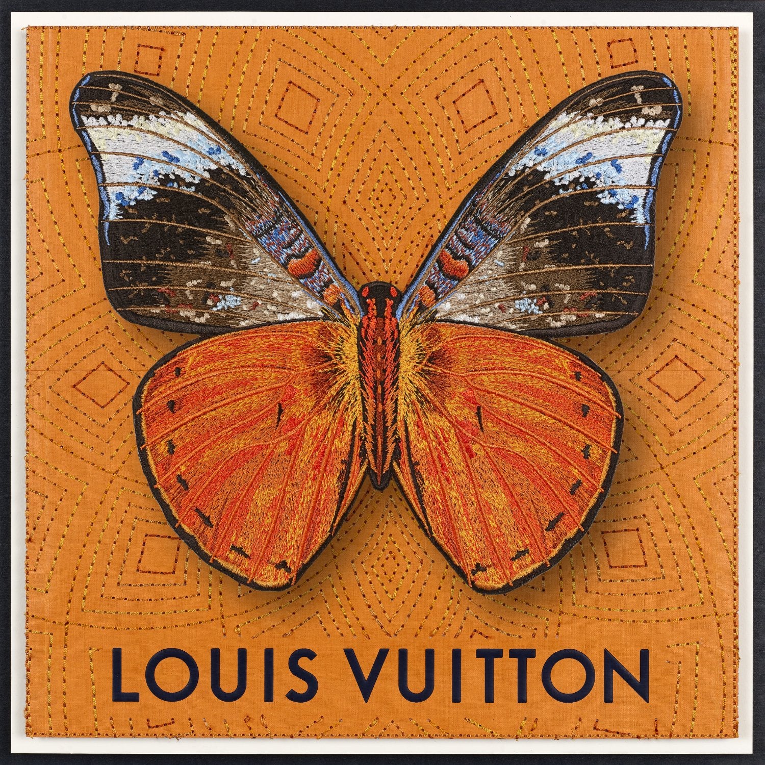 Stephen Wilson expertly crafts extraordinary and timeless designs using sustainable materials. Each art piece embarks on a journey, starting with an up-cycled luxury bag, box, silk scarf, or album. Wilson meticulously creates a bespoke embroidery design, delicately intertwining every stitch by hand. Once the design, colors, and elements are meticulously selected, the artistic process advances to the assembling stage. The boxes and bags undergo a mesmerizing transformation, metamorphosing into captivating canvases for Wilson's creations. The embroidery is seamlessly integrated into the chosen medium, unveiling a captivating texture that breathes life into the artwork. Appliqués, patches, and butterflies are individually stitched out, meticulously crafted, and delicately placed on each piece, culminating in a truly distinctive and unparalleled masterpiece. Finally, each artwork is beautifully presented, encased in an acrylic frame, ready to enchant all who behold it.