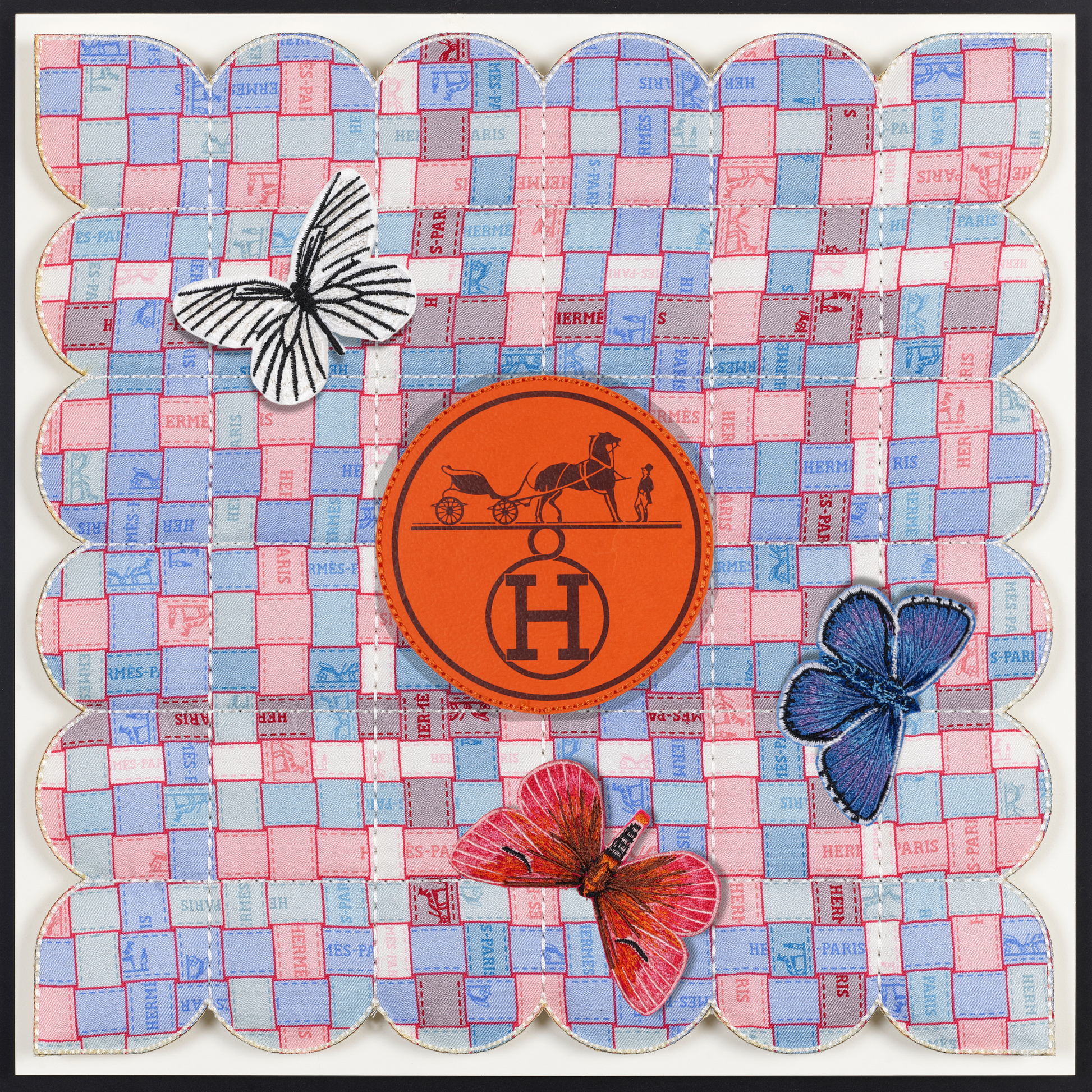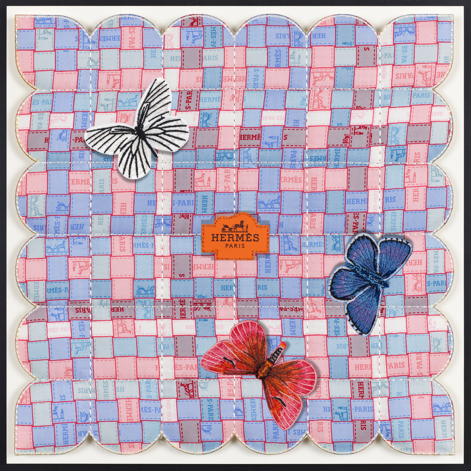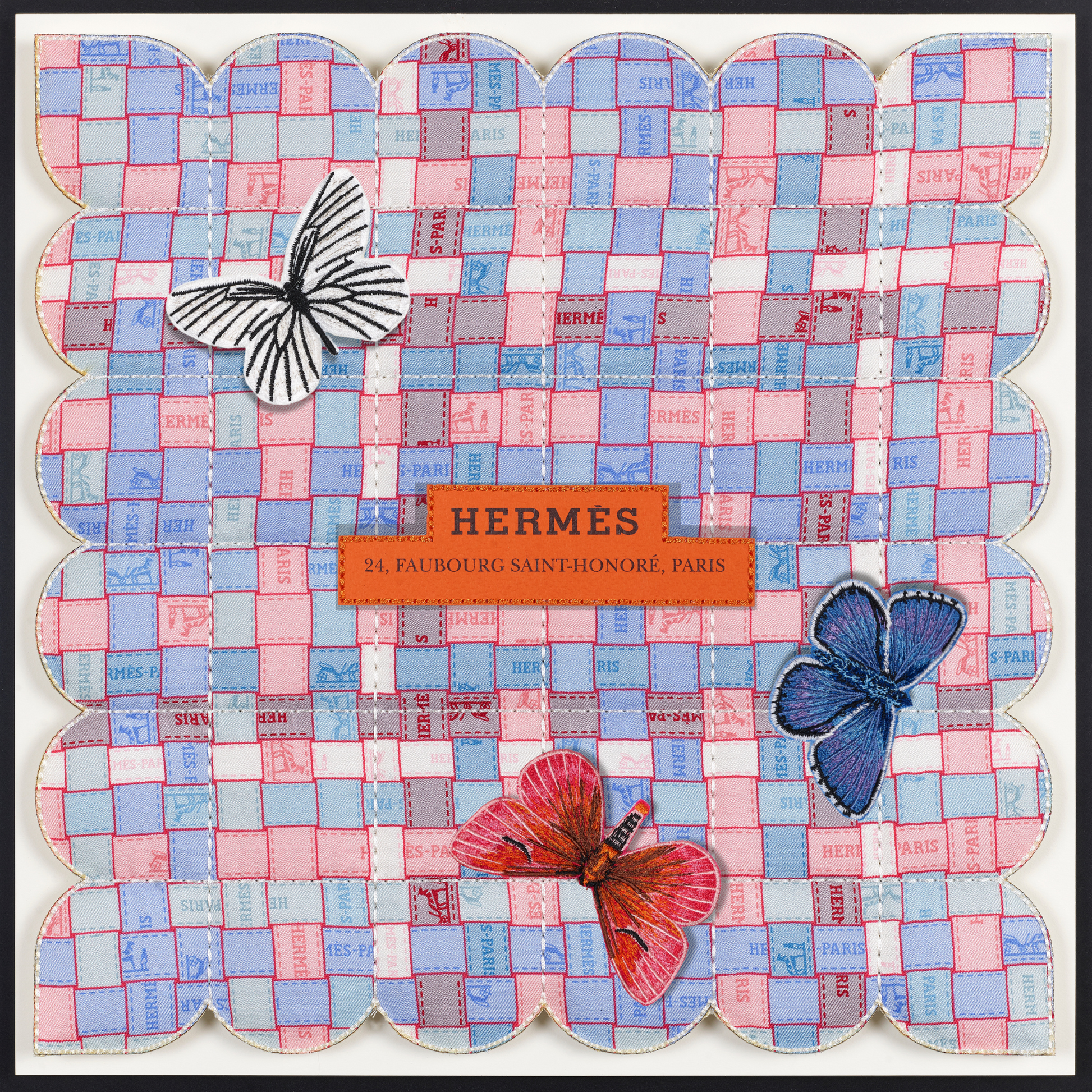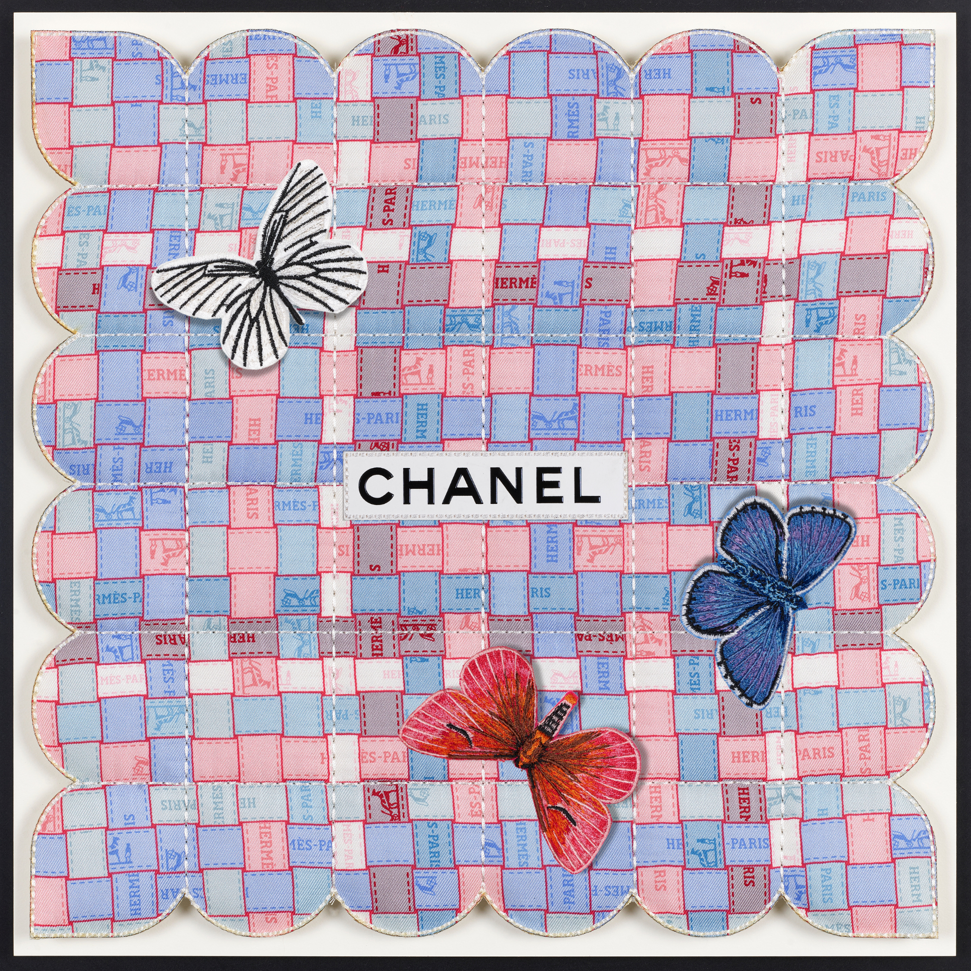 In a fascinating twist, the tapestries are also enhanced with thoughtfully selected up-cycled luxury packaging, merging high fashion with eco-conscious design. Delicate embroidered butterflies flutter gracefully across the surface, introducing an enchanting three-dimensional element that brings each piece to life. Every tapestry tells a distinct story, reflecting not only the beauty of the materials but also the thoughtful craftsmanship behind it. Due to their unique combinations and individual designs, these pieces are genuinely one of a kind, making them treasured works of art that resonate with both style and sustainability. Each tapestry serves as a testament to the innovative potential of up-cycling, inviting viewers to appreciate the intricate balance between luxury and environmental responsibility.