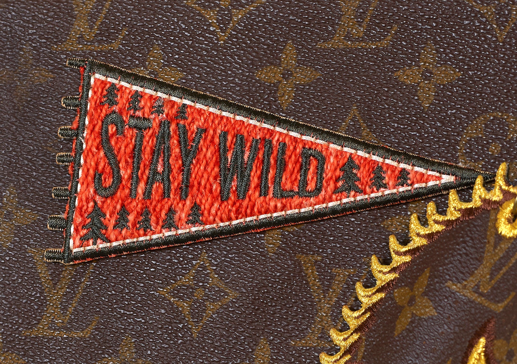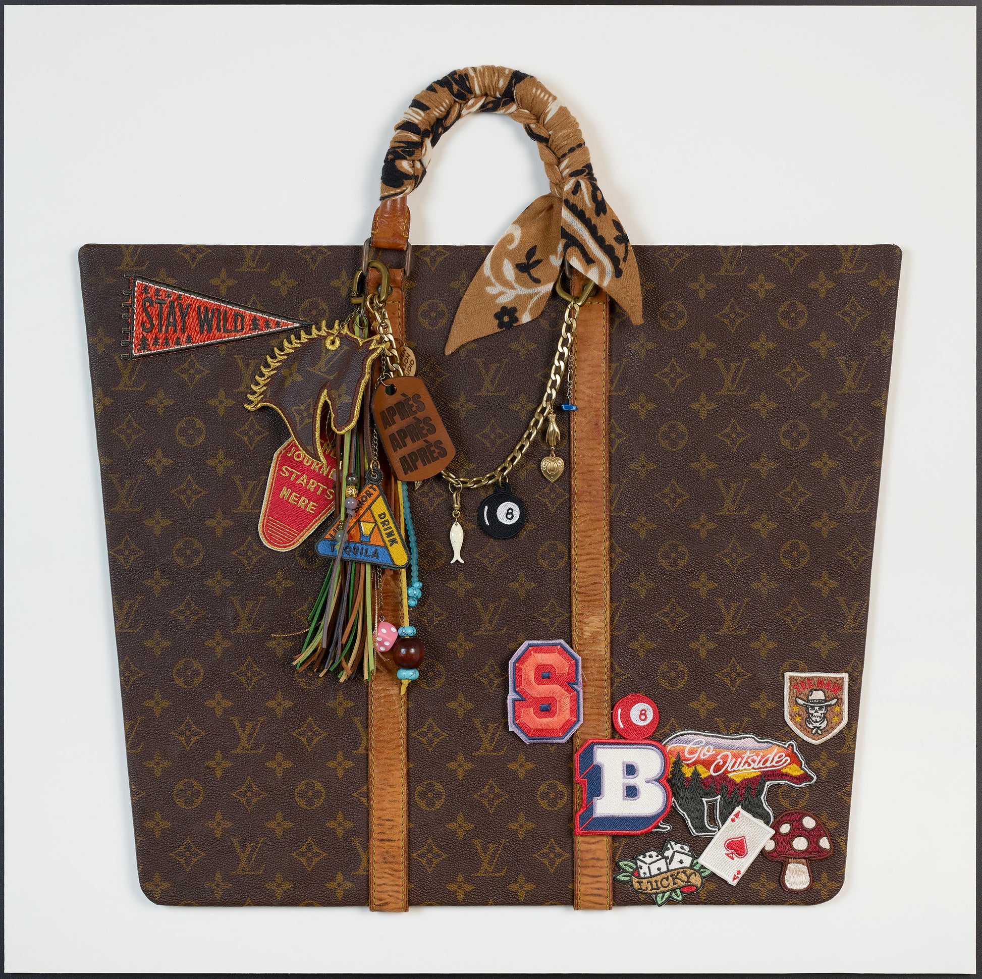 The Second Life pieces have grown into something deeply personal—artworks that don’t just tell a story, but tell your story. Each one begins with a vintage Louis Vuitton bag, already carrying years of history and character. We carefully take it apart, honoring its past, and then reimagine it as a new canvas. That canvas is mounted onto a backboard, and the handle is wrapped in an upcycled luxury scarf—an elegant finishing touch that feels like sealing the piece with a gesture of care.