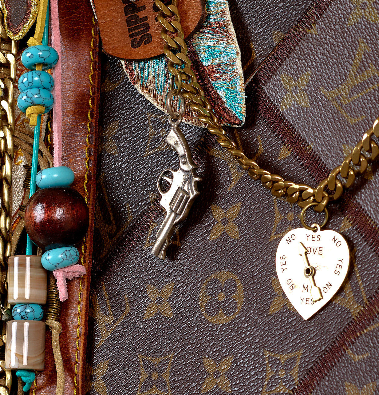 An exquisite blend of hand-digitized embroidery, collage and assemblage goes into each and every piece.