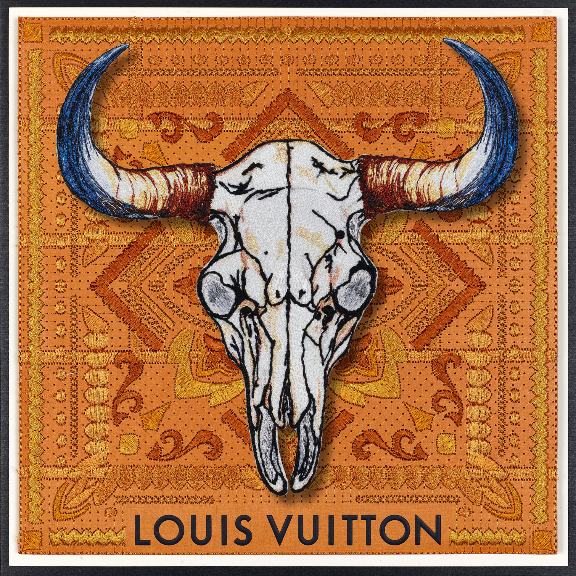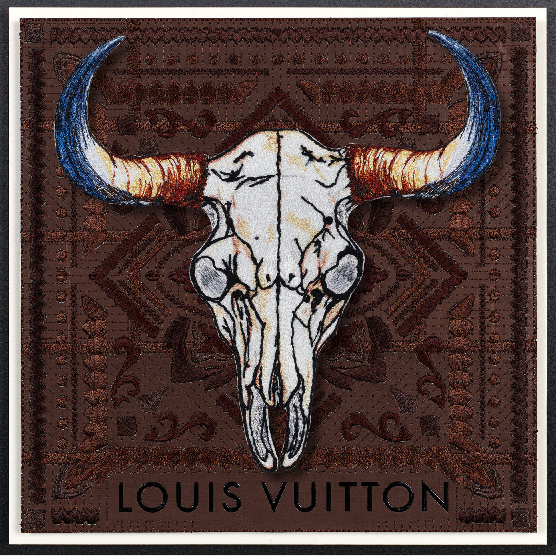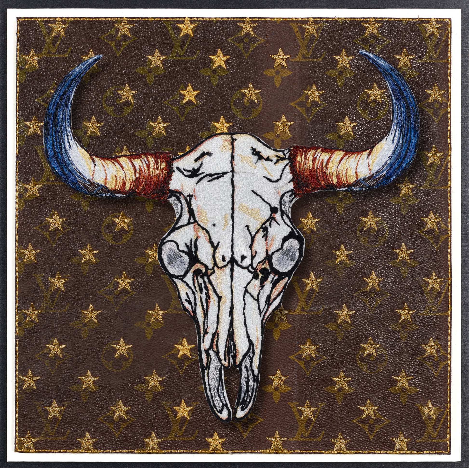 Western motifs—broncos, trick riders, steer skulls, and waving flags—are embroidered in vivid threads, rising from the surface with dimensional force. Each piece stands as a tactile tribute to the grit, grace, and enduring mythos of the American West.
