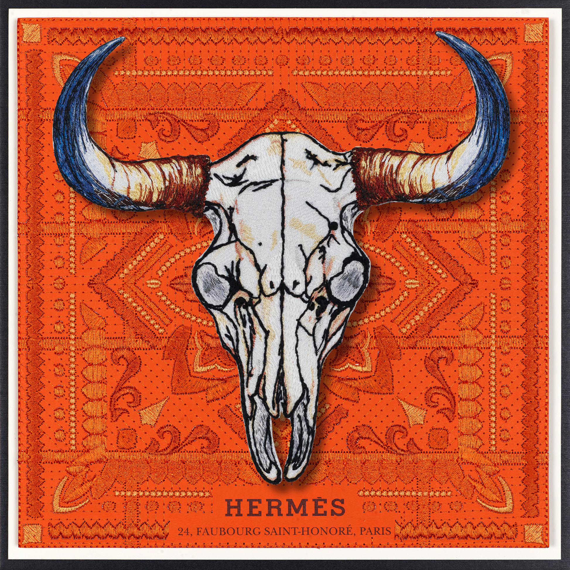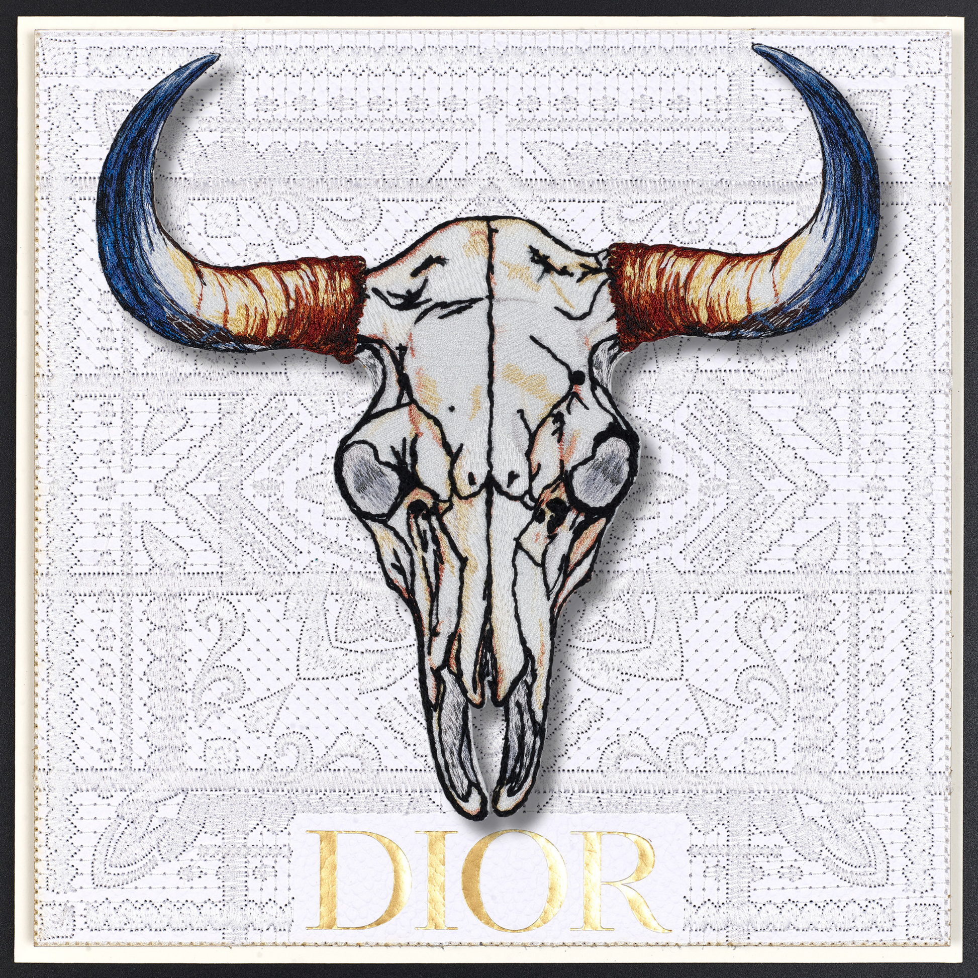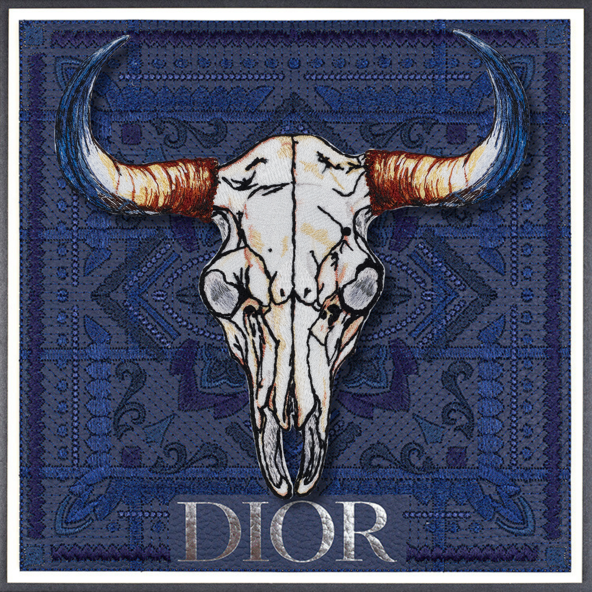Western motifs—broncos, trick riders, steer skulls, and waving flags—are embroidered in vivid threads, rising from the surface with dimensional force. Each piece stands as a tactile tribute to the grit, grace, and enduring mythos of the American West.