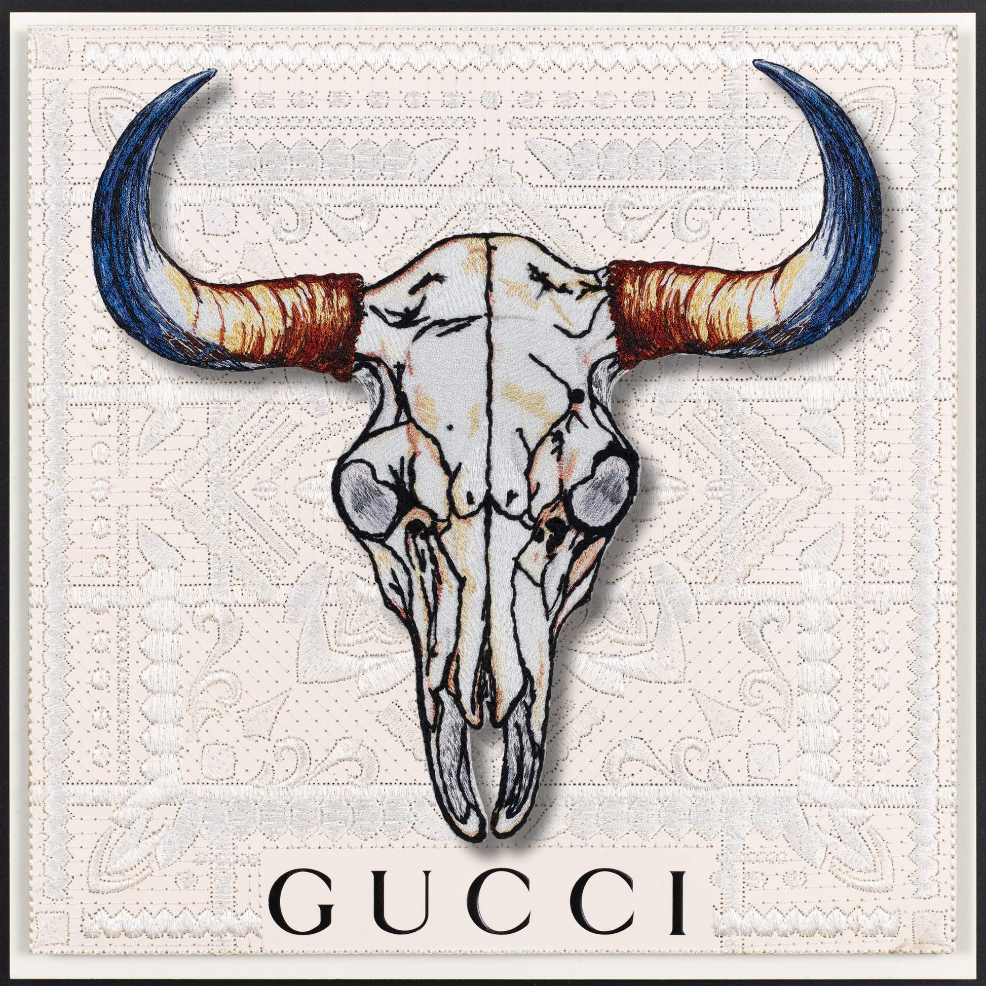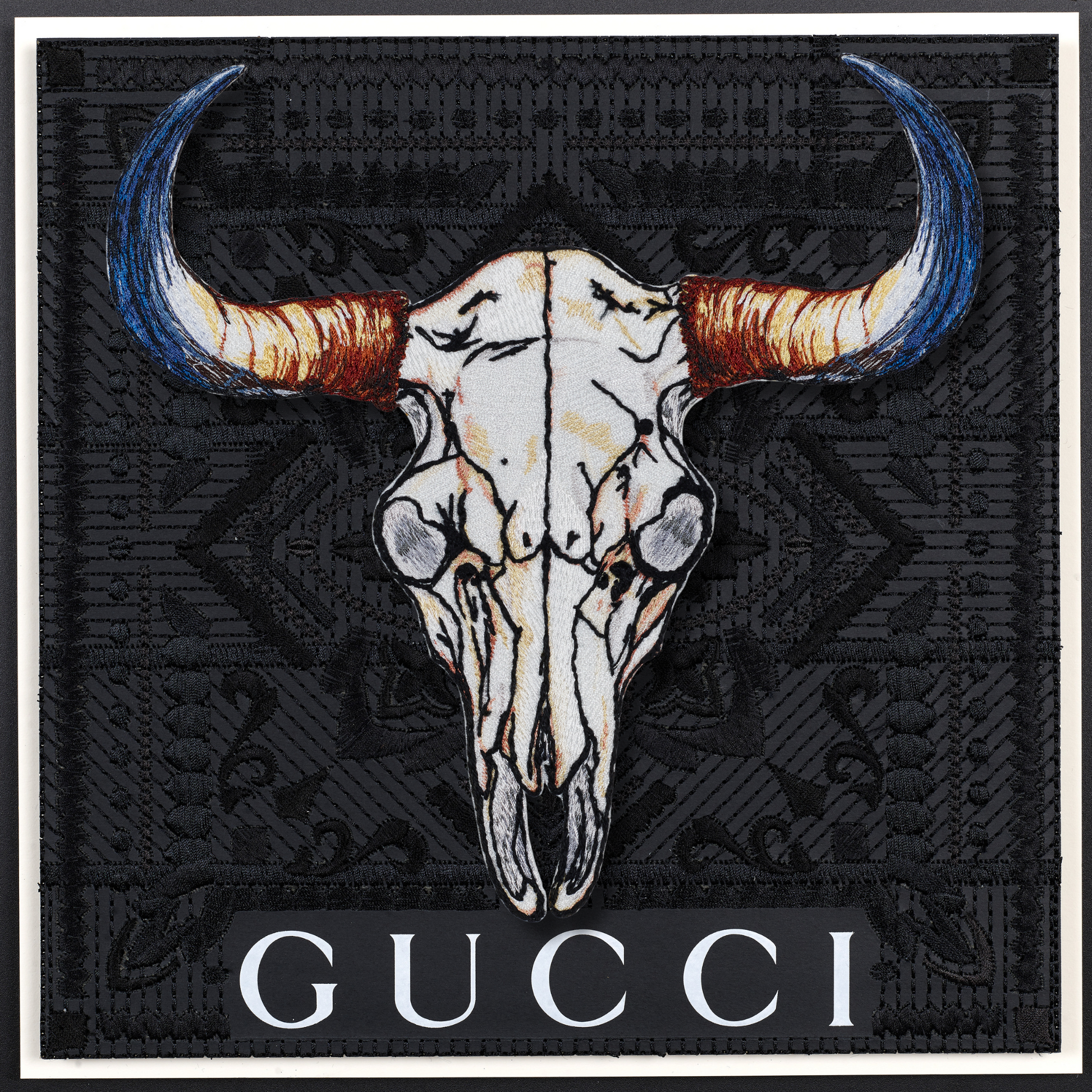 An exquisite blend of hand-digitized embroidery, collage and assemblage goes into each and every piece.