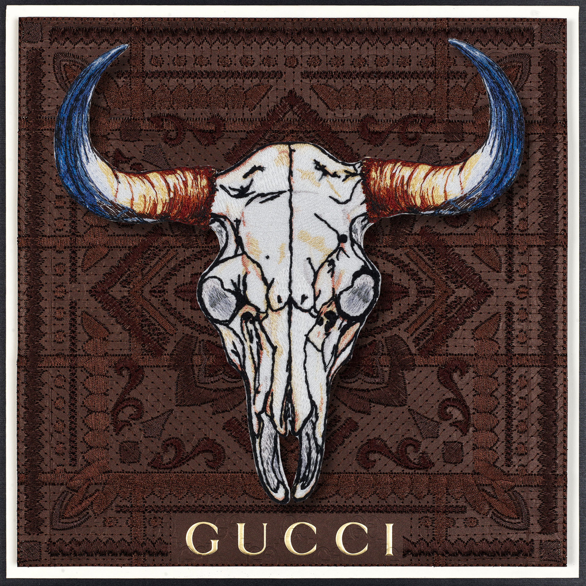 SKU:AS-GUCCI BROWN-12x12 STEER SKULL
