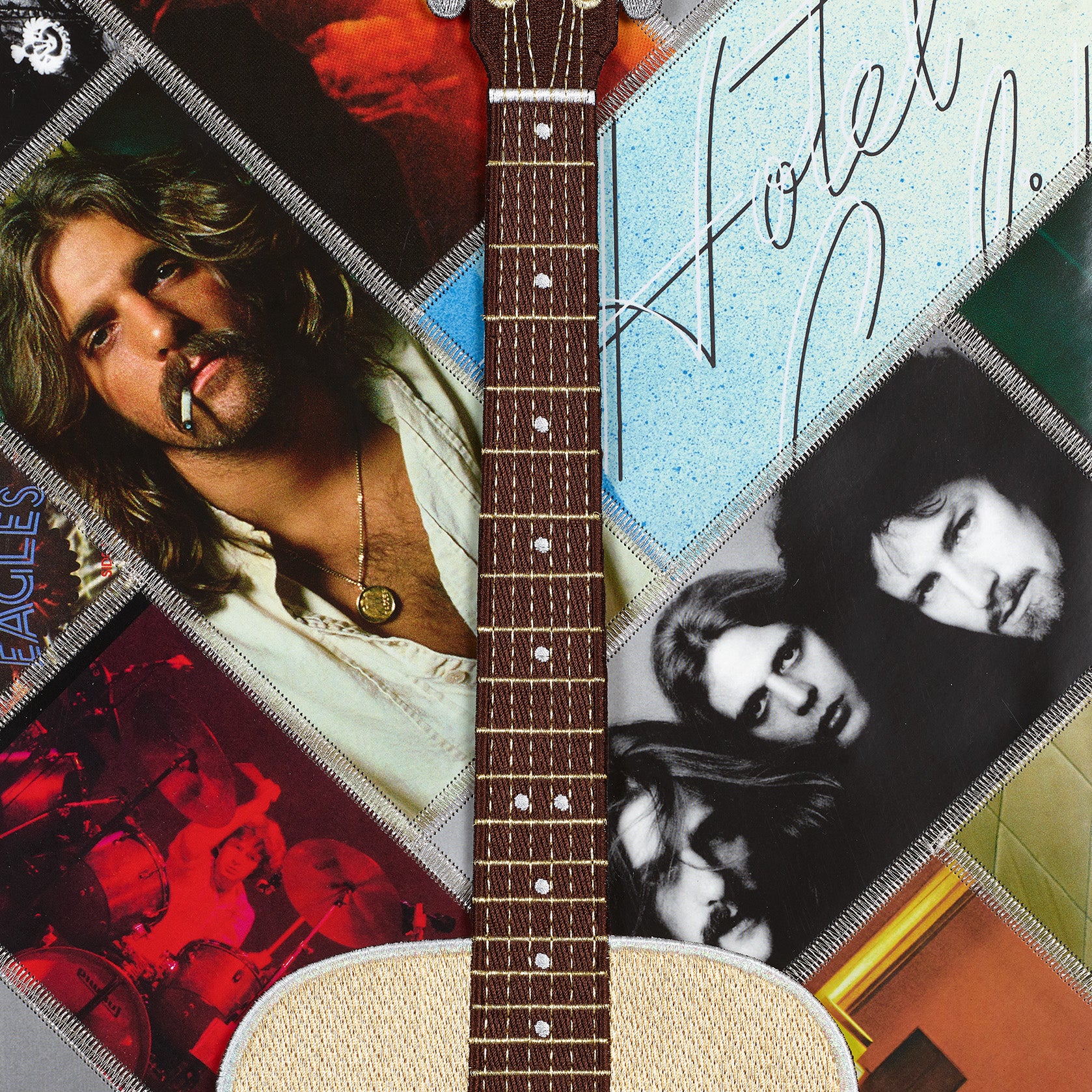 This piece uses assorted Eagles albums that are de-constructed, collaged and embroidered.